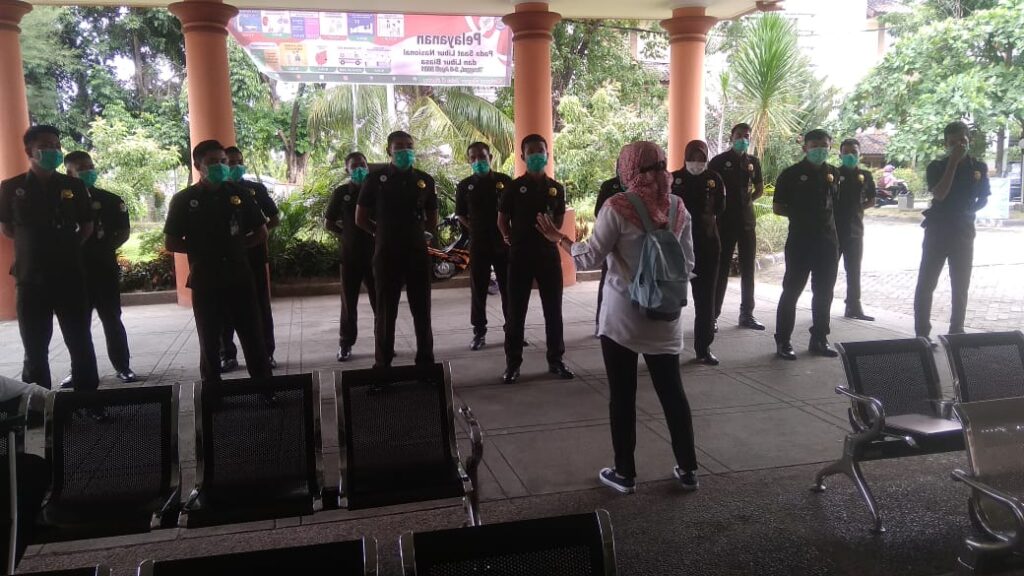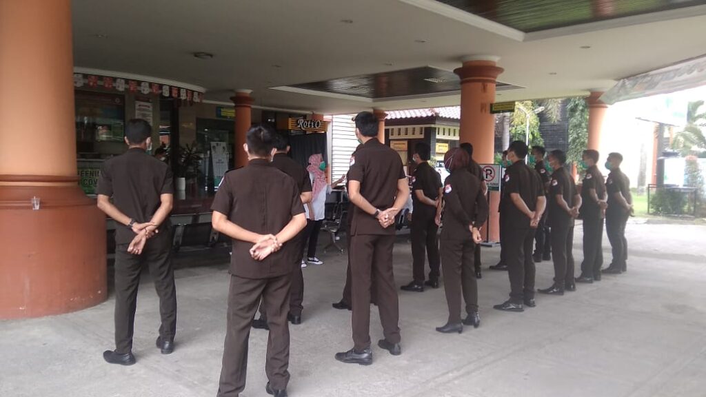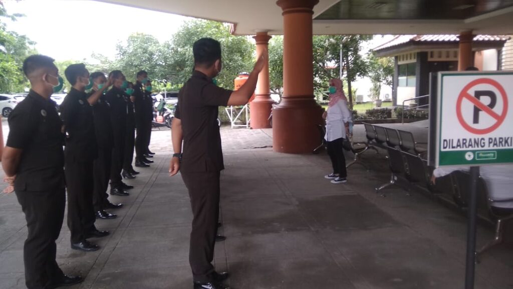 MATARAM. (05/04) Briefing siang security merupakan kewajiban sebelum serah terima dengan regu pagi. Siang ini, briefing langsung diambil oleh Kepala Instalasi PKRS & K3RS, Tina Indrayani, SST. Ft.