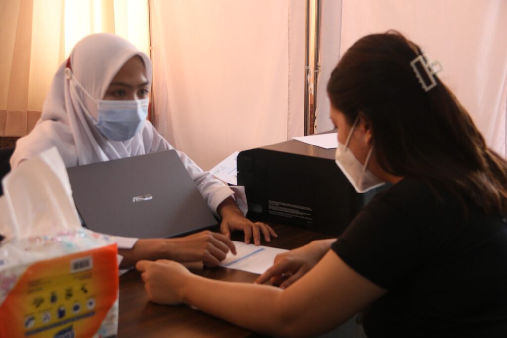Seperti diketahui sebelum divaksinasi, setiap Calon Penerima / Peserta harus menjalani skrining dan pemeriksaan kesehatan (di meja 2) seperti tekanan darah. Jika hasil pemeriksaan tersebut menunjukkan hasil tidak normal, maka belum bisa melanjutkan ke tahap vaksinasi. Ada yang diminta istirahat terlebih dahulu atau pemeriksaan lanjutan sebelum vaksinasi.