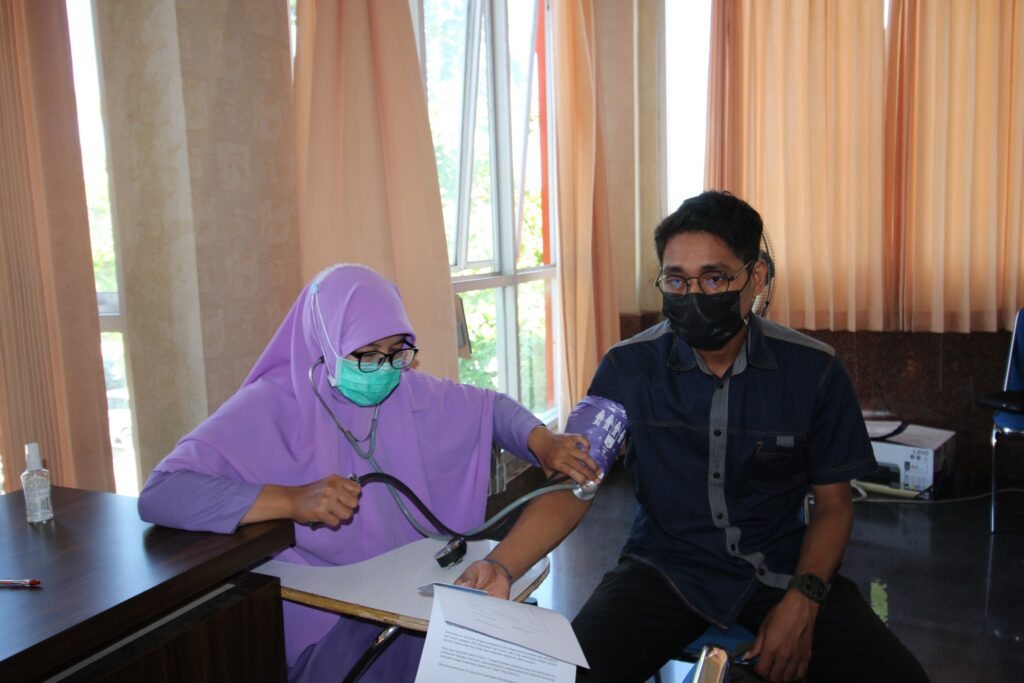 Seperti diketahui sebelum divaksinasi, setiap Calon Penerima / Peserta harus menjalani skrining dan pemeriksaan kesehatan (di meja 2) seperti tekanan darah. Jika hasil pemeriksaan tersebut menunjukkan hasil tidak normal, maka belum bisa melanjutkan ke tahap vaksinasi. Ada yang diminta istirahat terlebih dahulu atau pemeriksaan lanjutan sebelum vaksinasi.
