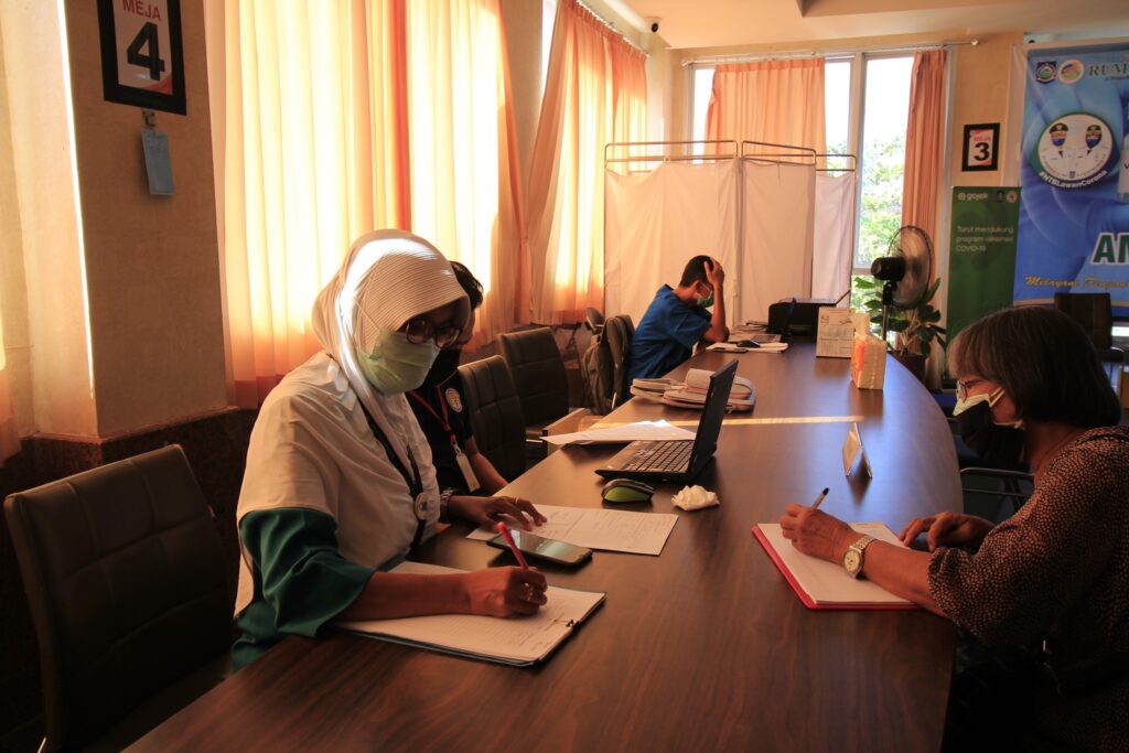 Seperti diketahui sebelum divaksinasi, setiap Calon Penerima / Peserta harus menjalani skrining dan pemeriksaan kesehatan (di meja 2) seperti tekanan darah. Jika hasil pemeriksaan tersebut menunjukkan hasil tidak normal, maka belum bisa melanjutkan ke tahap vaksinasi. Ada yang diminta istirahat terlebih dahulu atau pemeriksaan lanjutan sebelum vaksinasi.