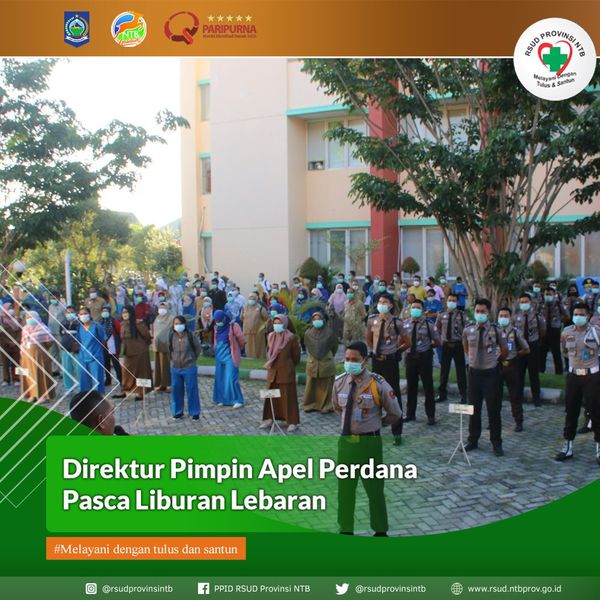 MATARAM. (17/05) Direktur dr. H. Lalu Herman Mahaputra, M.Kes, MH mengingatkan untuk meningkatkan kapasitas layanan RS. Hal ini disampaikan Direktur saat apel perdana setelah libur lebaran Hari Raya Idul Fitri 1442 H.