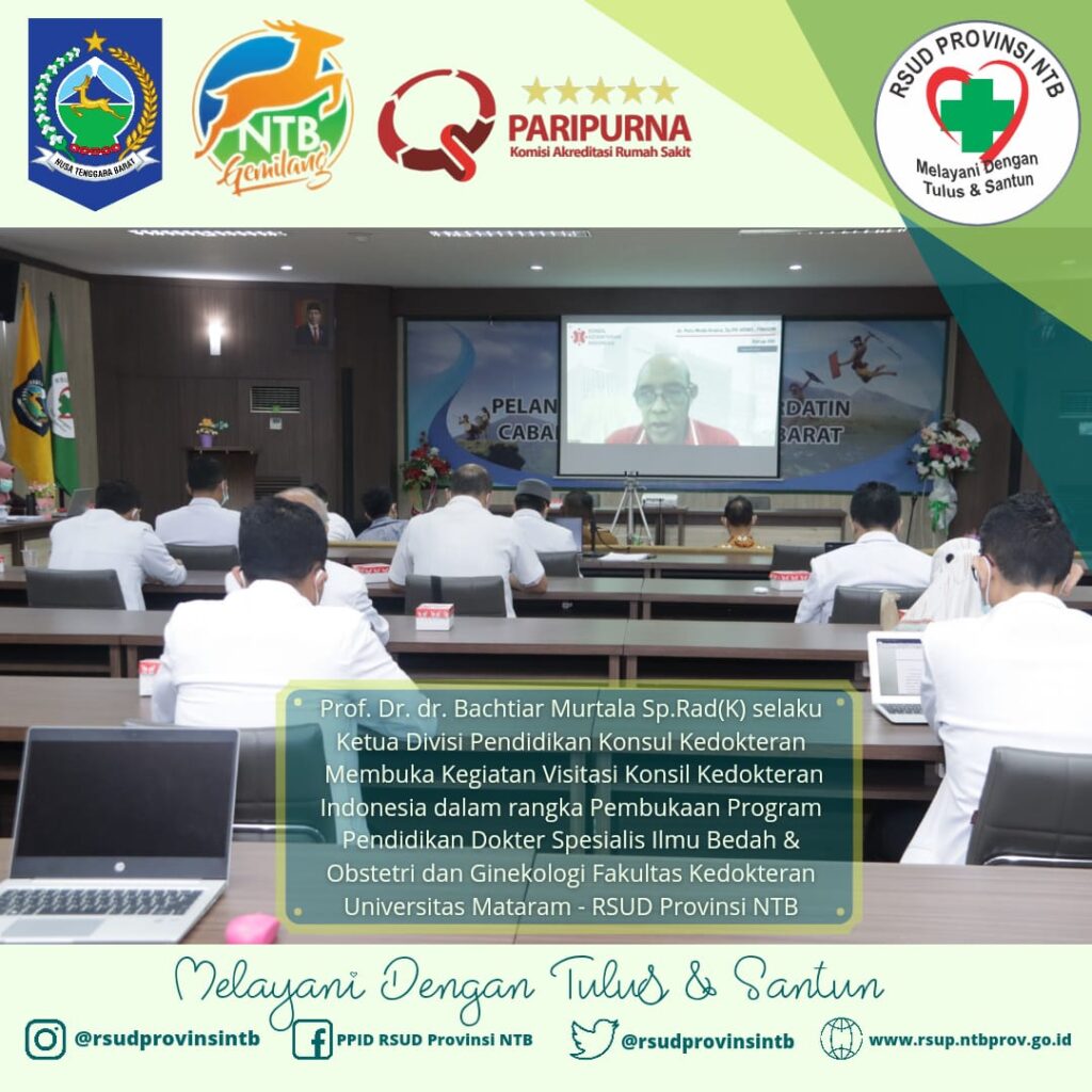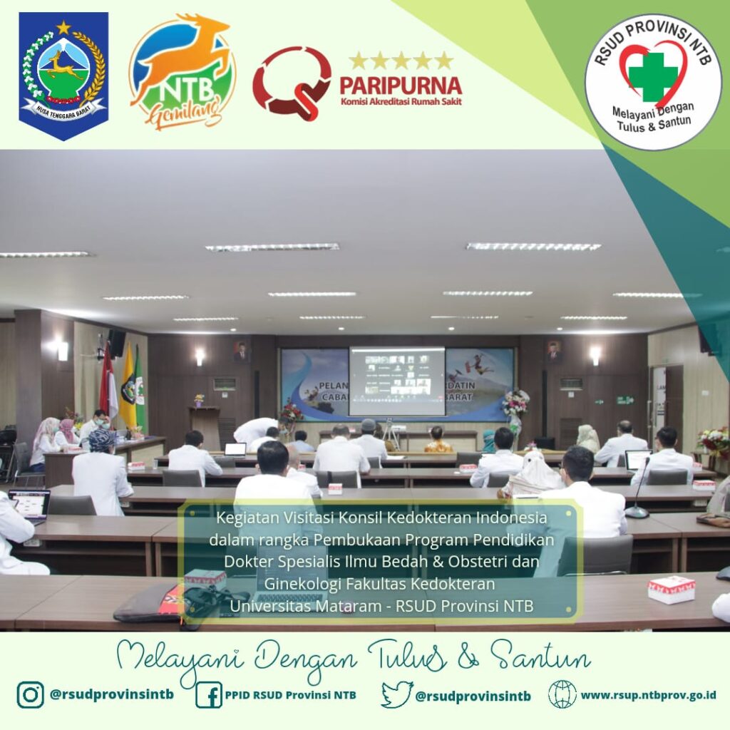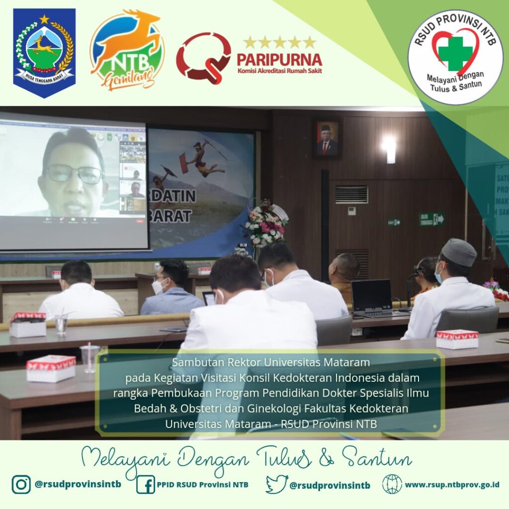 MATARAM (14/06) Pagi ini di Aula Rinjani RSUD Provinsi NTB dilaksanakan kegiatan Visitasi Konsil Kedokteran Indonesia dalam rangka Pembukaan Program Pendidikan Dokter Spesialis Ilmu Bedah & Obstetri dan Ginekologi Fakultas Kedokteran Universitas Mataram – RSUD Provinsi NTB secara Daring.