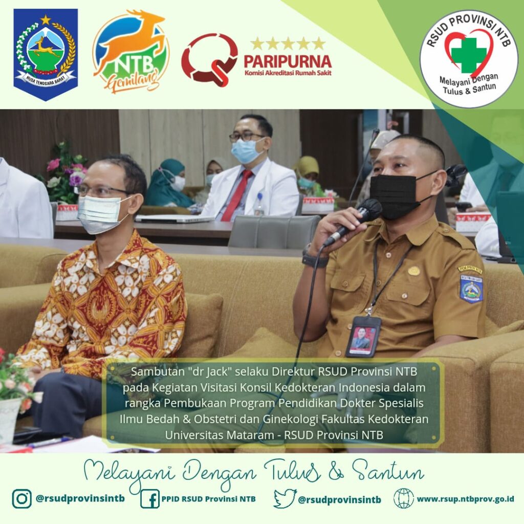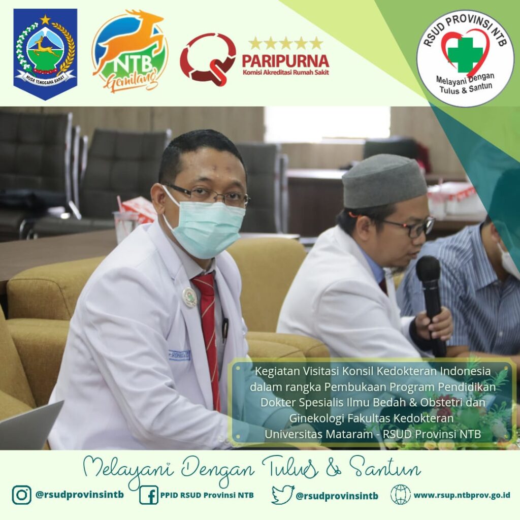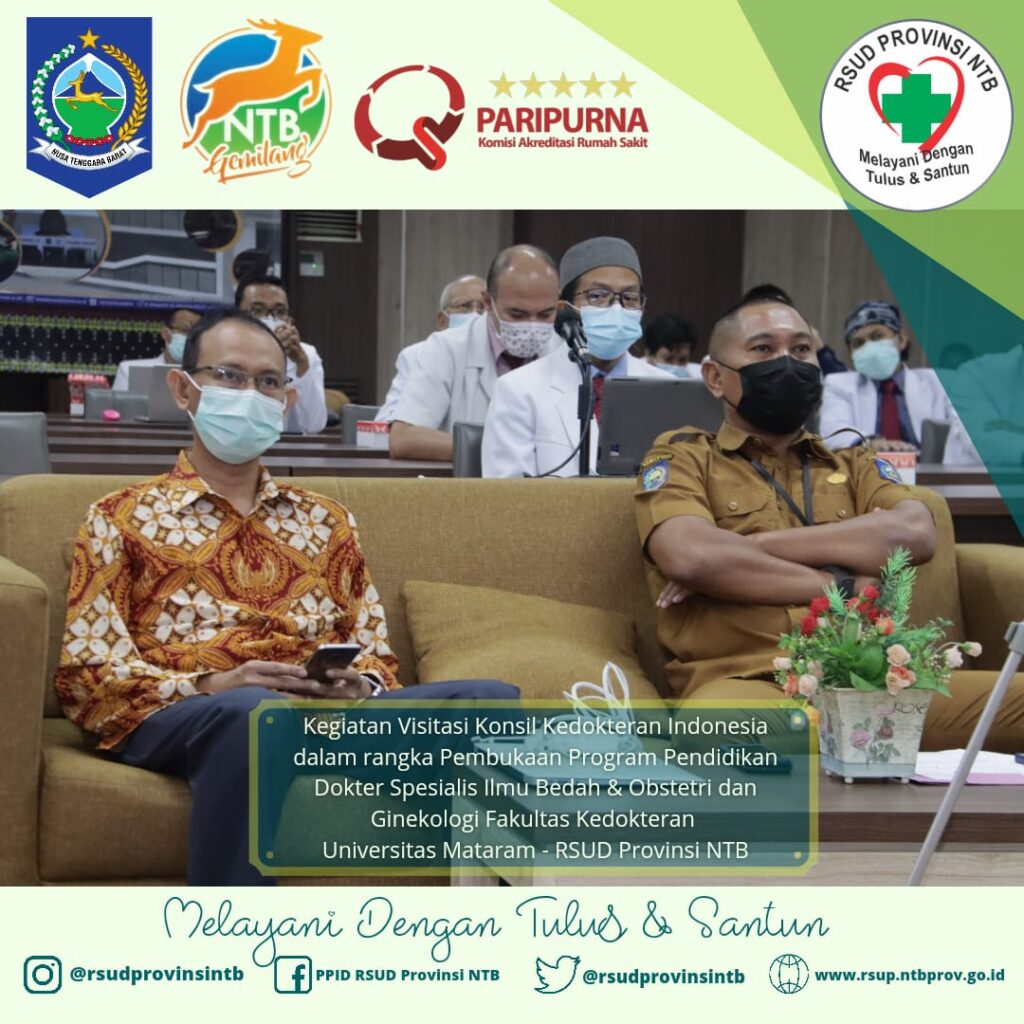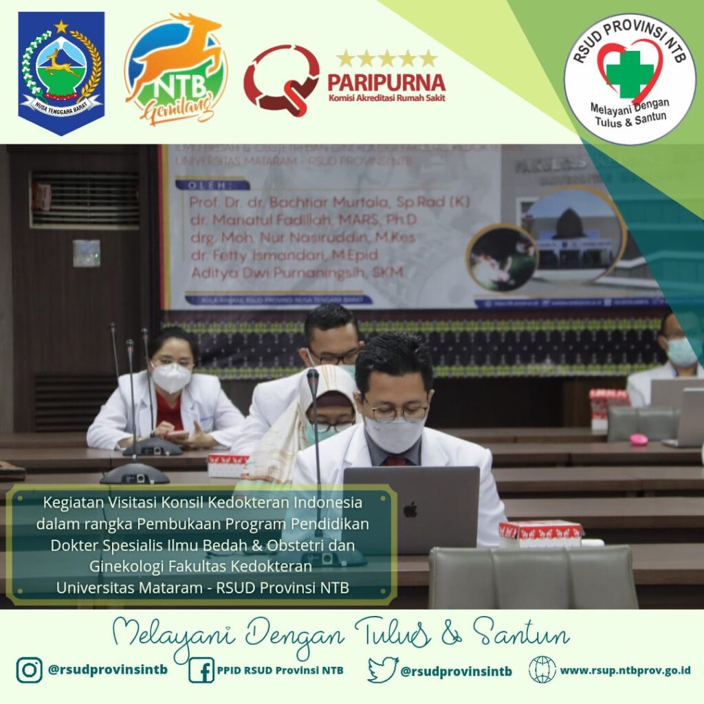 MATARAM (14/06) Pagi ini di Aula Rinjani RSUD Provinsi NTB dilaksanakan kegiatan Visitasi Konsil Kedokteran Indonesia dalam rangka Pembukaan Program Pendidikan Dokter Spesialis Ilmu Bedah & Obstetri dan Ginekologi Fakultas Kedokteran Universitas Mataram – RSUD Provinsi NTB secara Daring.