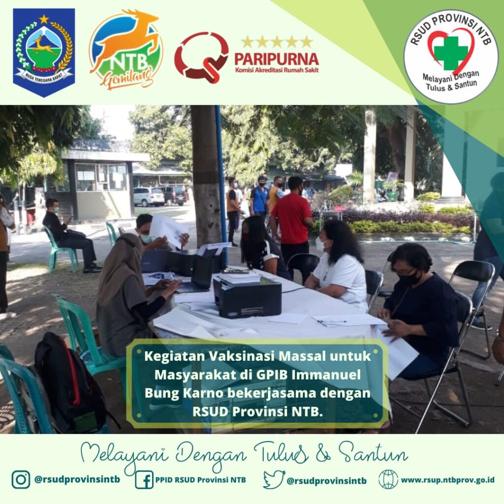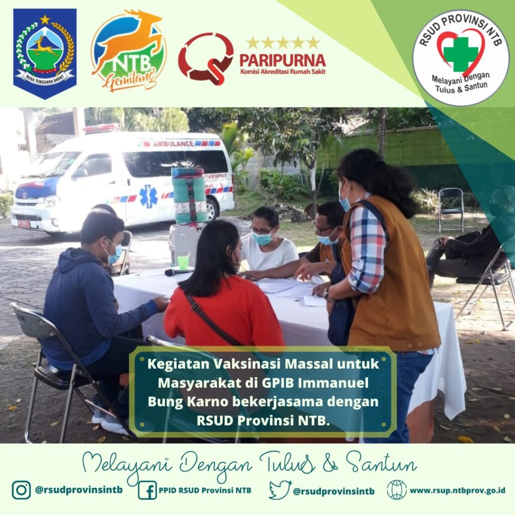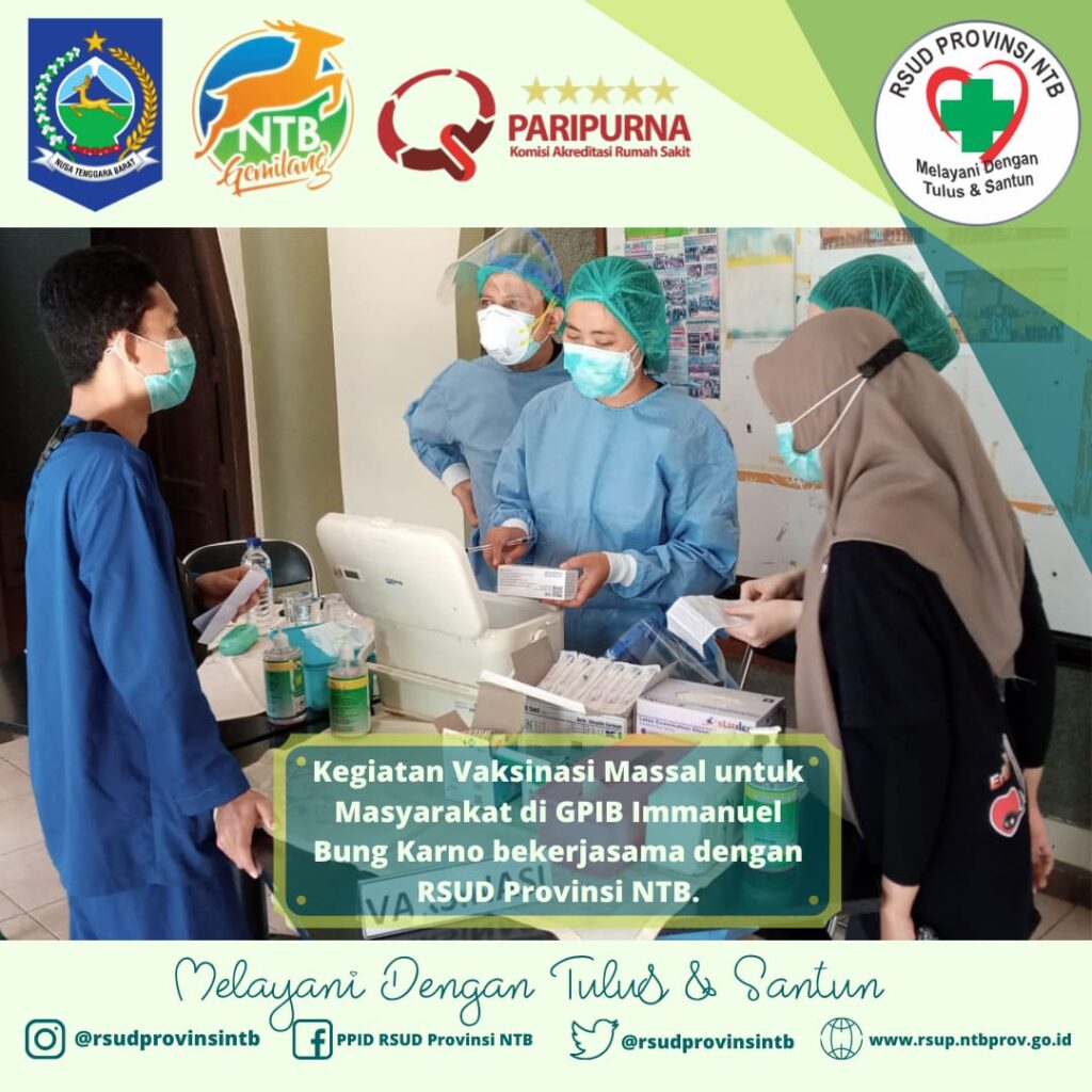 MATARAM (15/06) Rumah Sakit Umum Daerah Provinsi NTB melakukan Vaksinasi Massal COVID-19 di Gereja Immanuel Mataram.