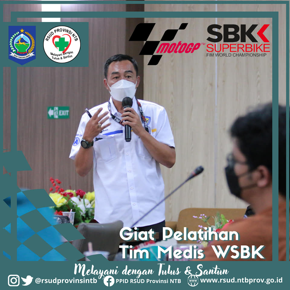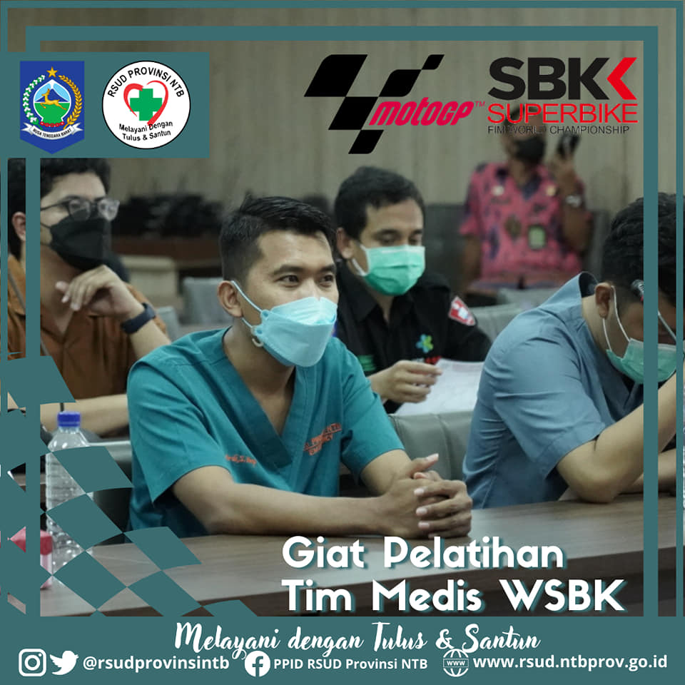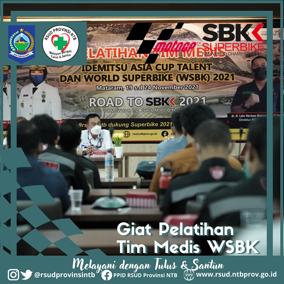 Hari ini dilaksanakan Pelatihan Tim Medis Idemitsu Asia Cup Talent dan World Super Bike (WSBK) 2021 di Aula Rinjani Gedung Manajemen dan Administrasi RSUD Provinsi NTB.