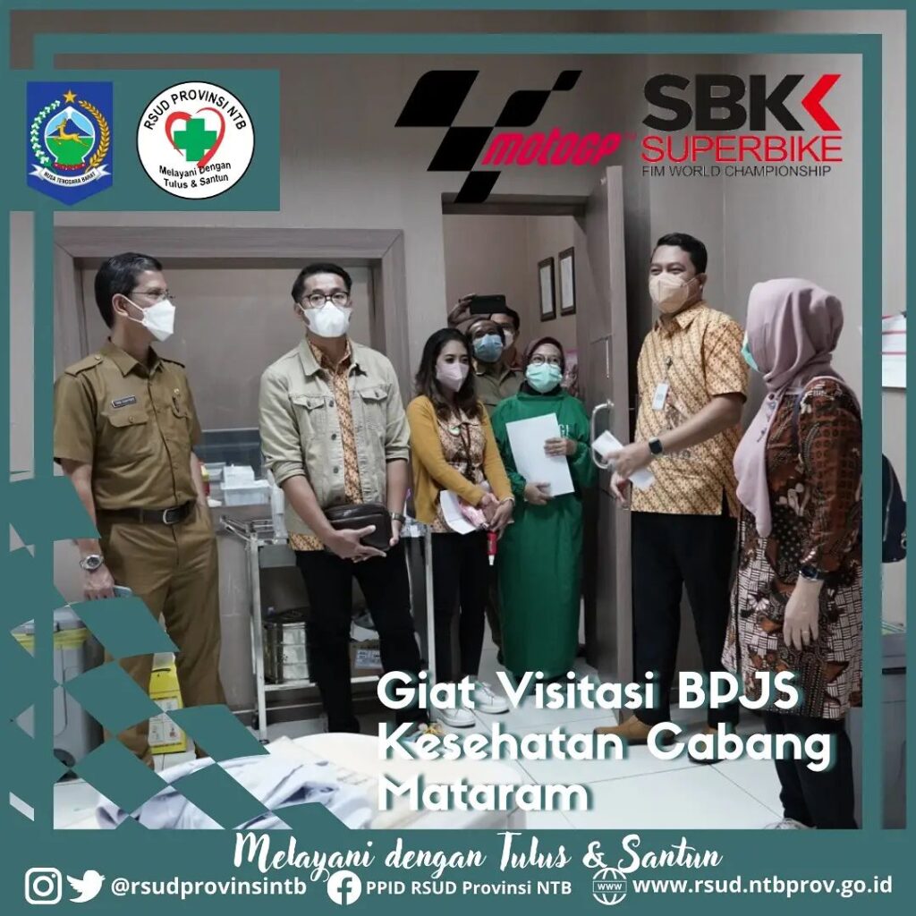 Dalam Rangka menjamin mutu pelayanan kesehatan yang berkualitas bagi peserta Jaminan Kesehatan Nasional – Kartu Indonesia Sehat (JKN-KIS) tadi pagi Pimpinan Cabang BPJS Kesehatan Mataram bersama Dinas Kesehatan Kota Mataram melaksanakan Visitasi Fasilitas Kesehatan pada Fasilitas Kesehatan Rujukan Tingkat Lanjutan (FKRTL) khususnya RSUD Provinsi NTB.