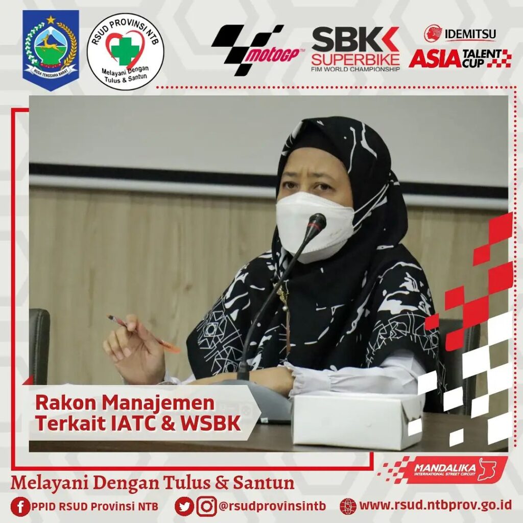 Wakil Direktur Pelayanan RSUD Provinsi NTB Ibu dr. Qomarul Islamiyati, Sp.KJ. dalam arahannya siang tadi kembali menegaskan komitmen Direktur agar kita semua terlibat dan berperan aktif dalam mempersiapkan secara maksimal RSUD Provinsi NTB sebagai Rumah Sakit Rujukan selama event berlangsung.