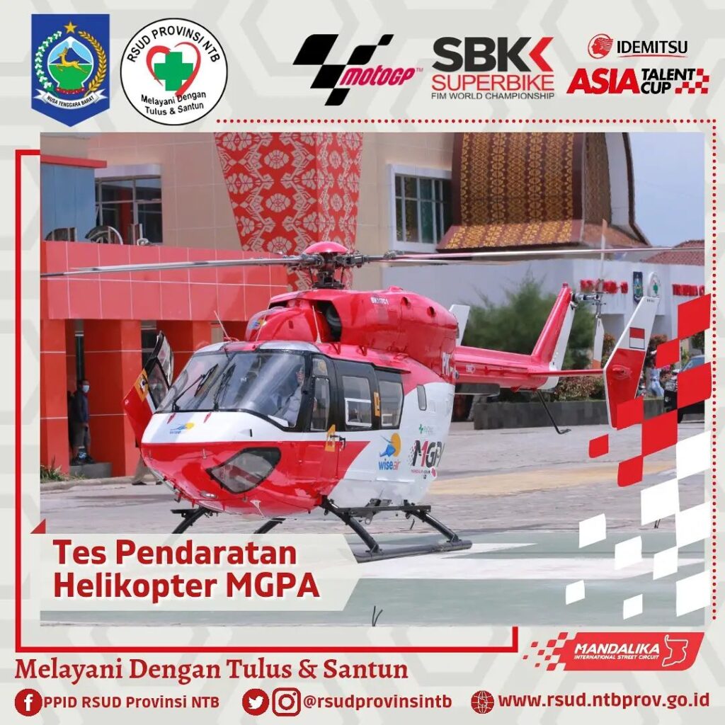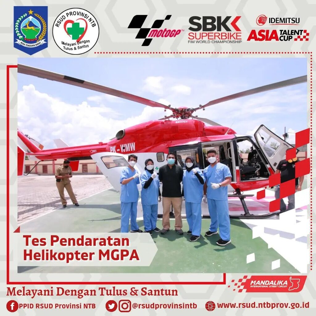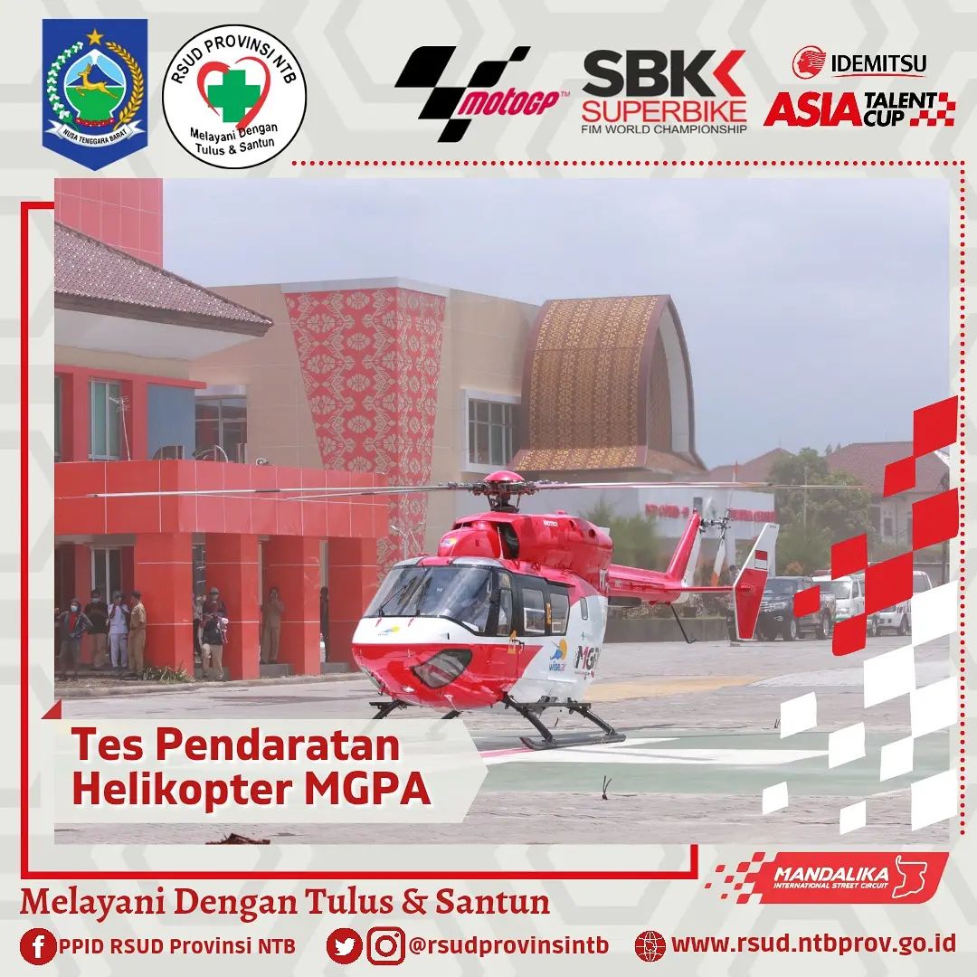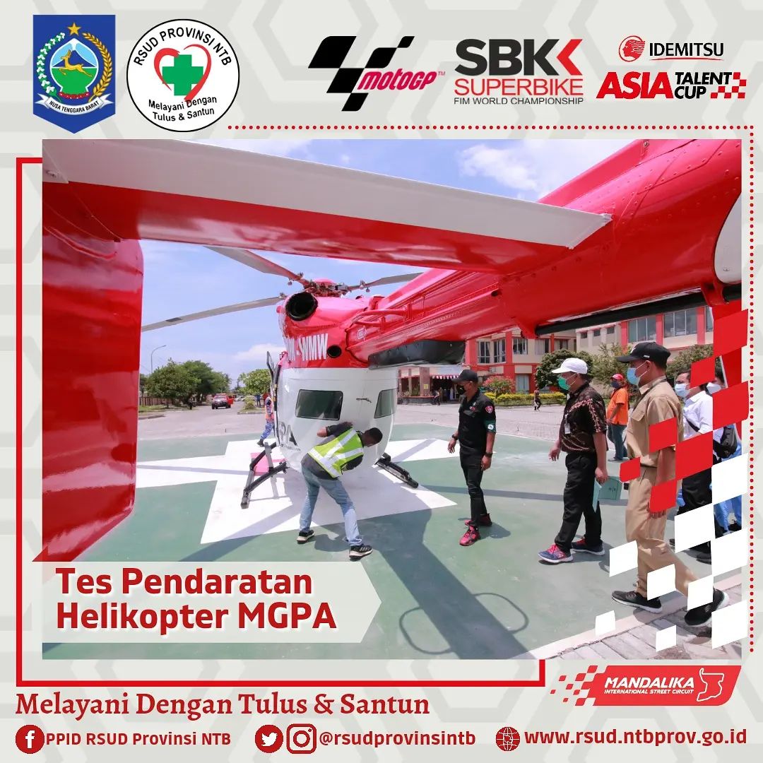 Setelah kemarin Helikopter Basarnas berhasil melaksanakan Pendaratan di Helipad RSUD Provinsi NTB, hari ini Helikopter milik MGPA juga melaksanakan Tes pendaratan.