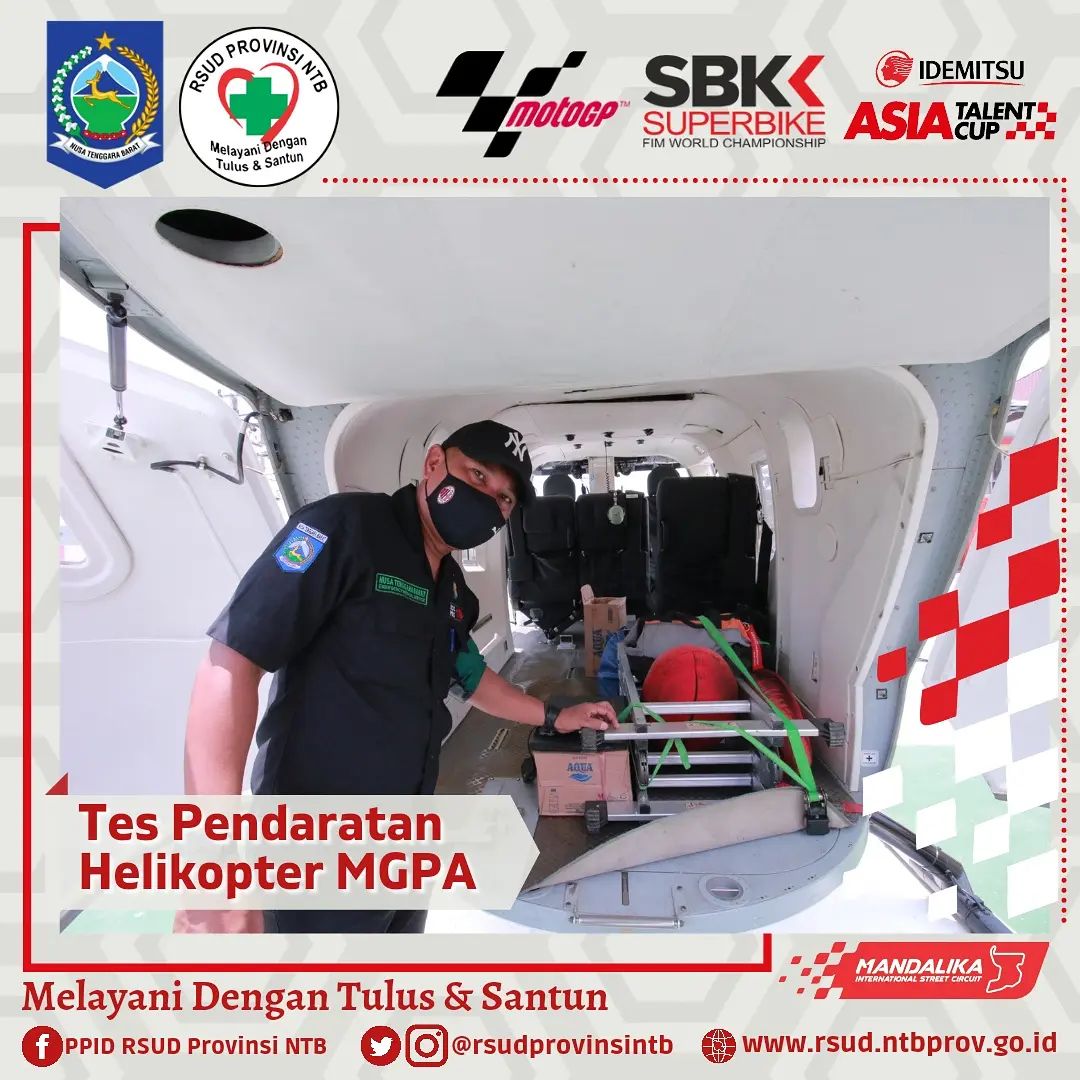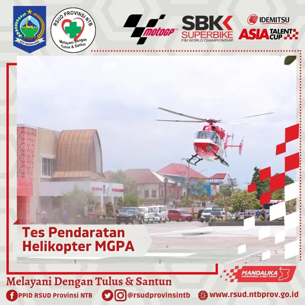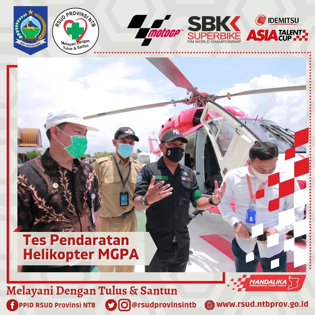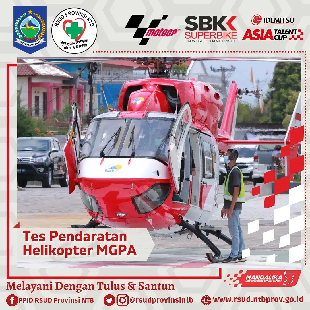 Setelah kemarin Helikopter Basarnas berhasil melaksanakan Pendaratan di Helipad RSUD Provinsi NTB, hari ini Helikopter milik MGPA juga melaksanakan Tes pendaratan.