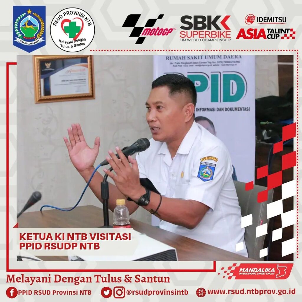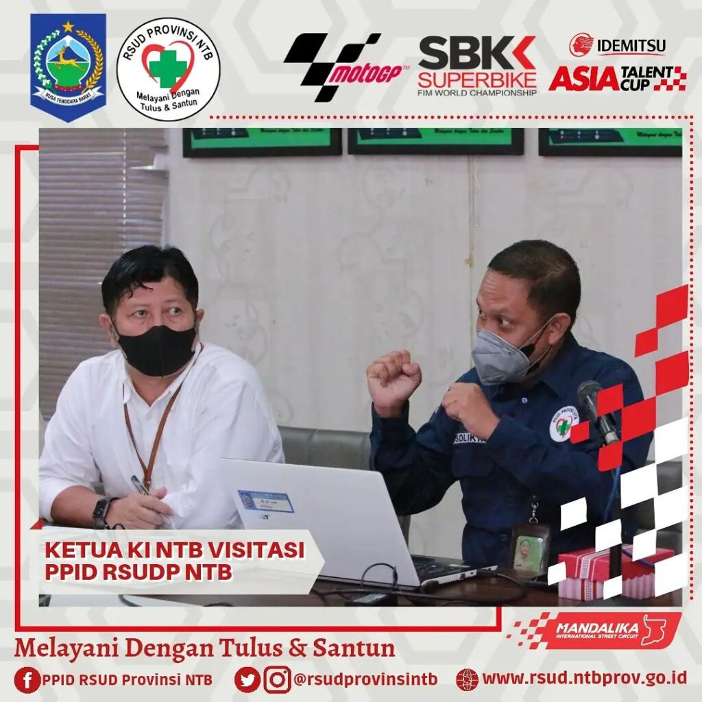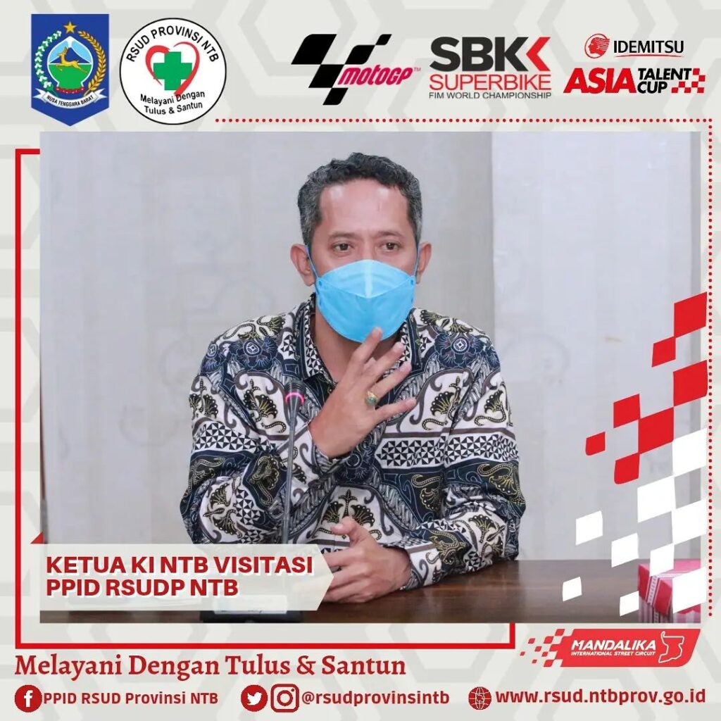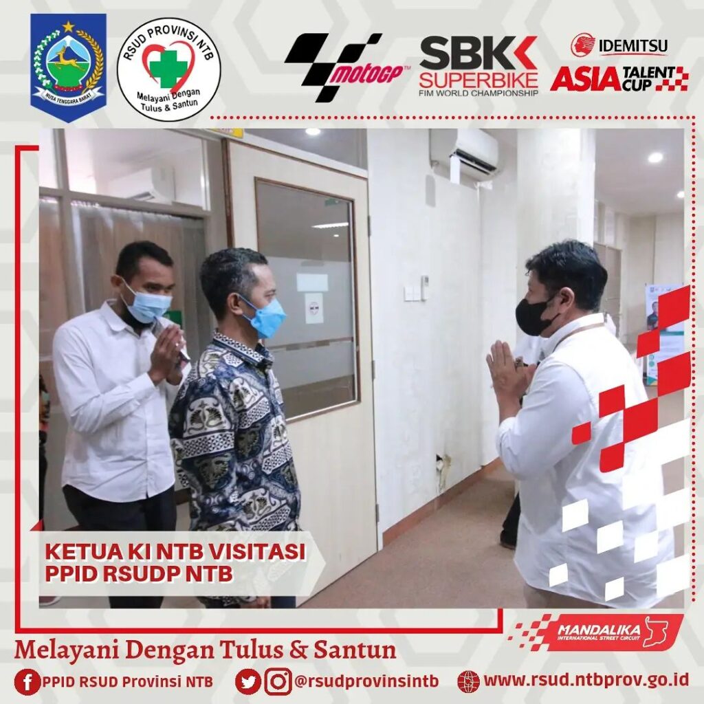 Ketua Komisi Informasi Nusa Tenggara Barat bersama Tim pagi ini melaksanakan Visitasi Dalam Rangka Penilaian Monitoring dan Evaluasi Keterbukaan Publik PPID RSUD Provinsi NTB, bertempat di Media Center Gedung Manajemen dan Administrasi Kasubag Hukum dan Humas mengawali pemaparan tentang apa yang telah dan yang akan dilakukan PPID RSUDP NTB, dikuatkan lagi oleh pemaparan Wakil Direktur Umum dan Keuangan yang menyampaikan tentang beberapa layanan unggulan.