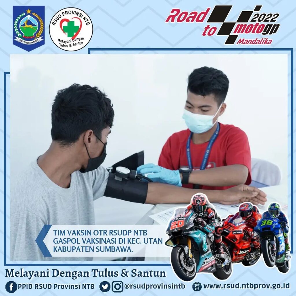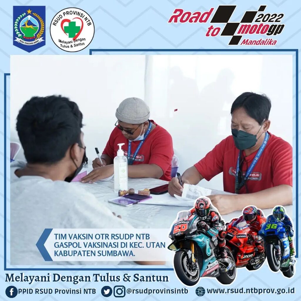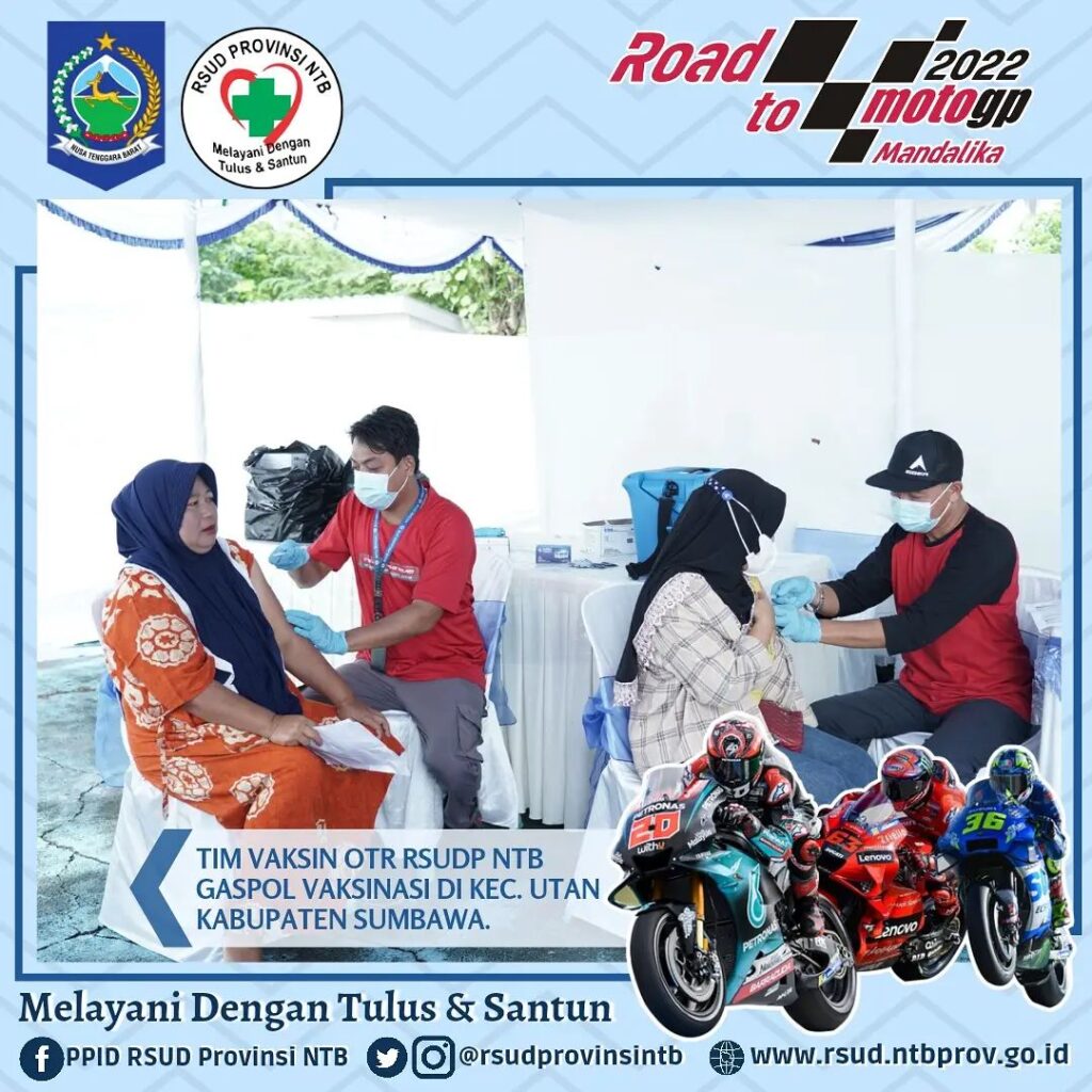 Tim Vaksin On The Road RSUD Provinsi NTB memulai kegiatan Roadshow Vaksinasi di Pulau Sumbawa hari ini di Lapangan Desa Jorok, Desa Motong dan Desa Jerongko, Kecamatan Utan, Kabupaten Sumbawa.