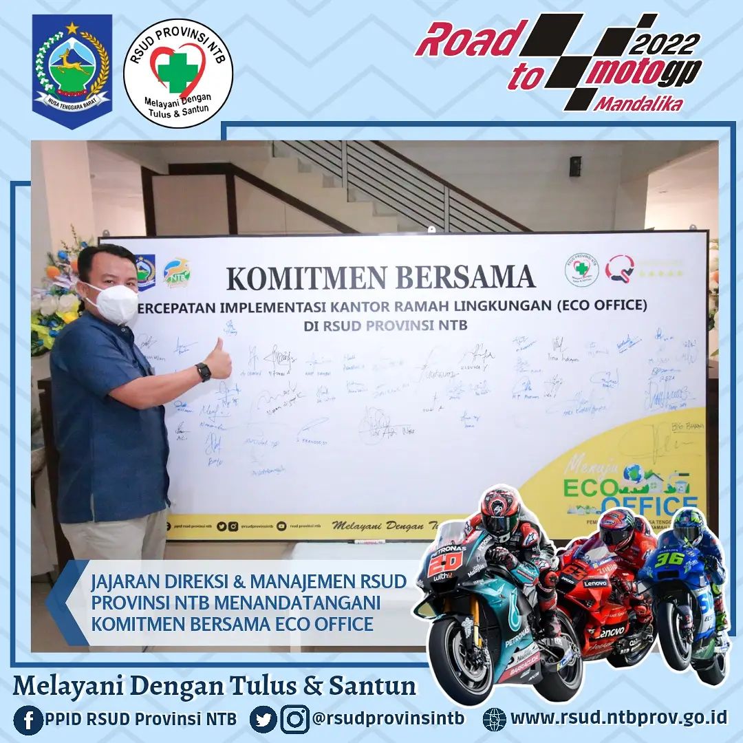 Jajaran Direksi dan Manajemen tadi pagi melaksanakan Penandatanganan Komitmen Bersama Percepatan Implementasi Kantor Ramah Lingkungan (Eco Office) di Rumah Sakit Umum Daerah Provinsi NTB.