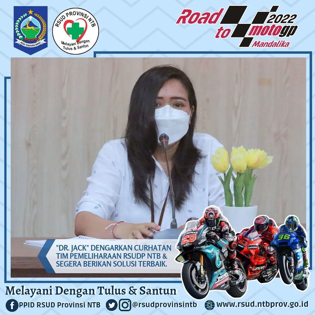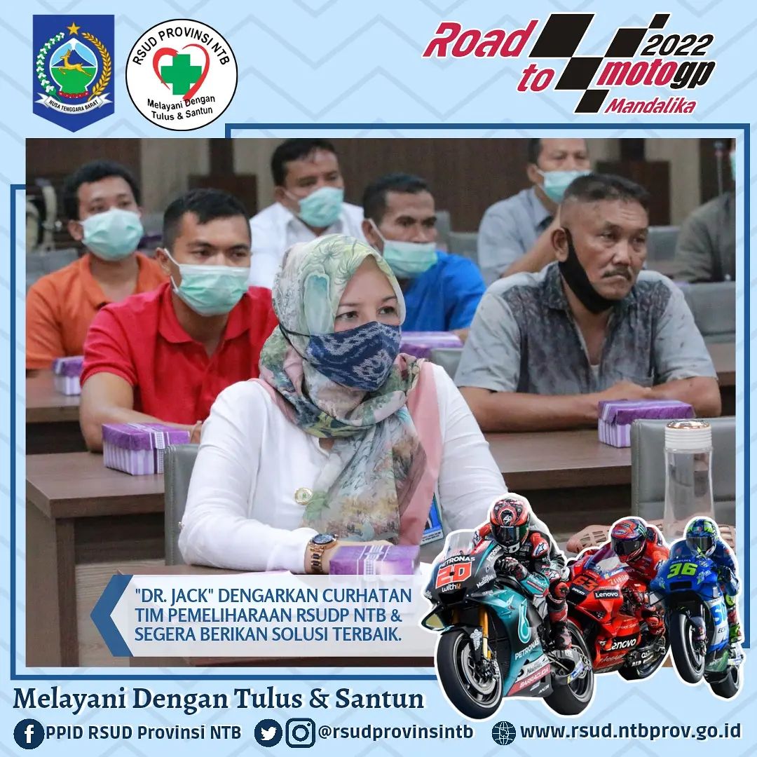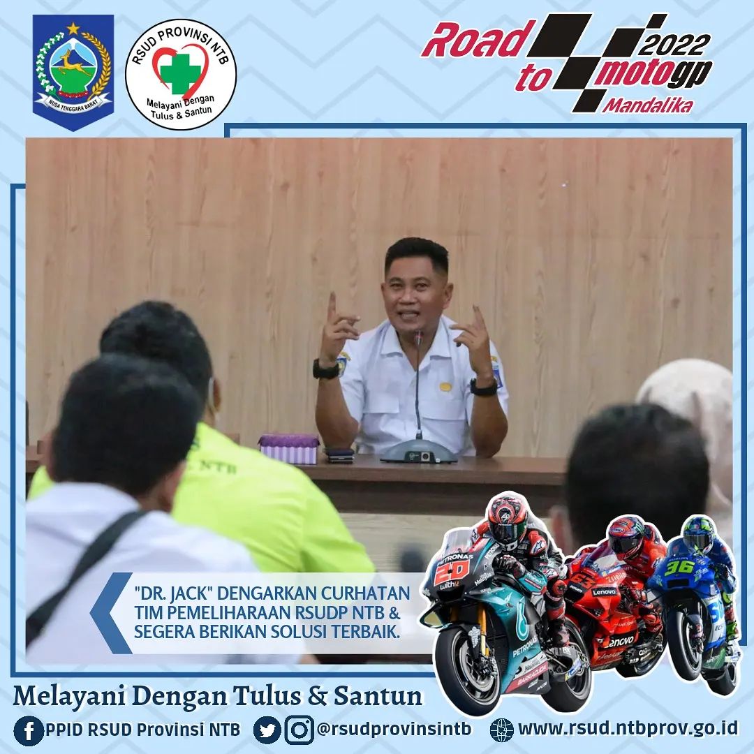 Atas inisiasi K3RS hari ini Tim Pemeliharaan RSUD Provinsi NTB langsung menyampaikan aspirasinya atau dalam bahasa kekinian “Curhat” kepada Direktur RSUD Provinsi NTB yang akrab disapa dr. Jack di Aula Rinjani Gedung Manajemen & Administrasi RSUD Provinsi NTB.