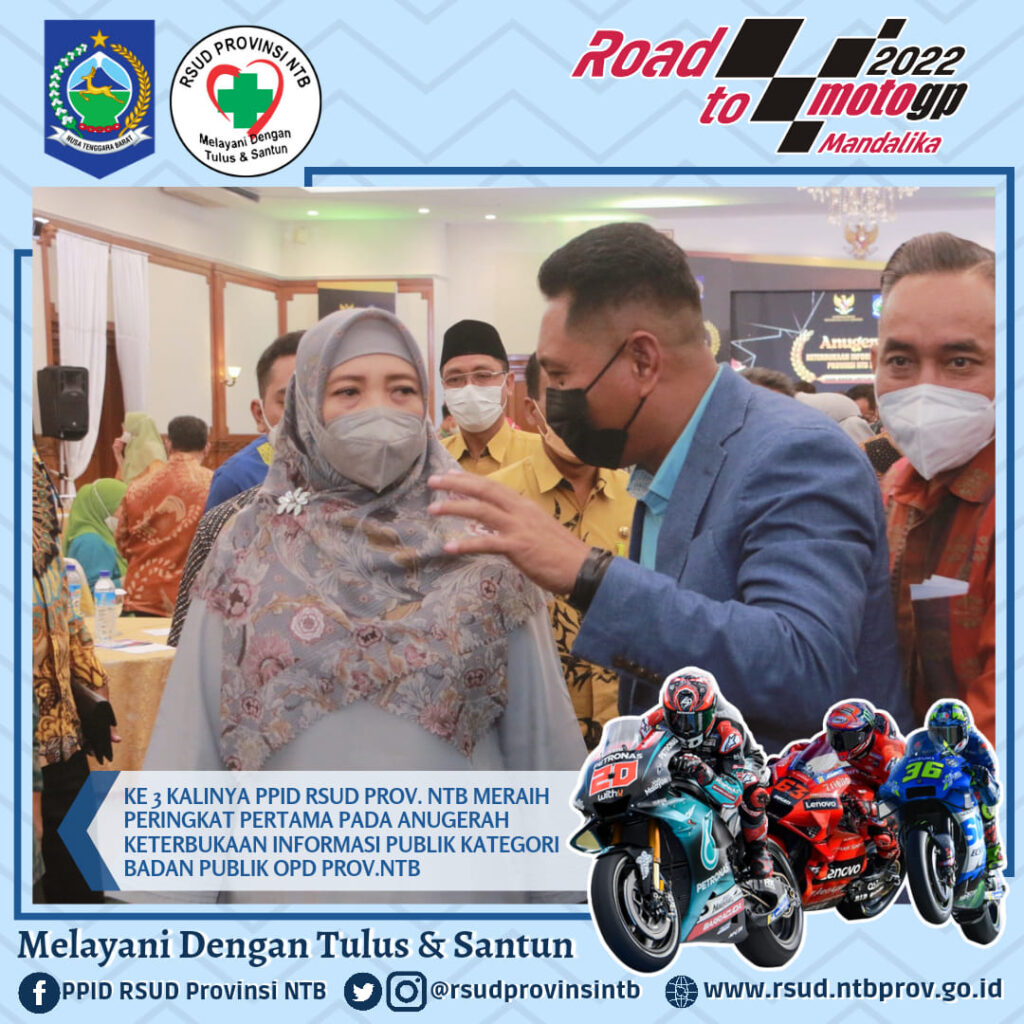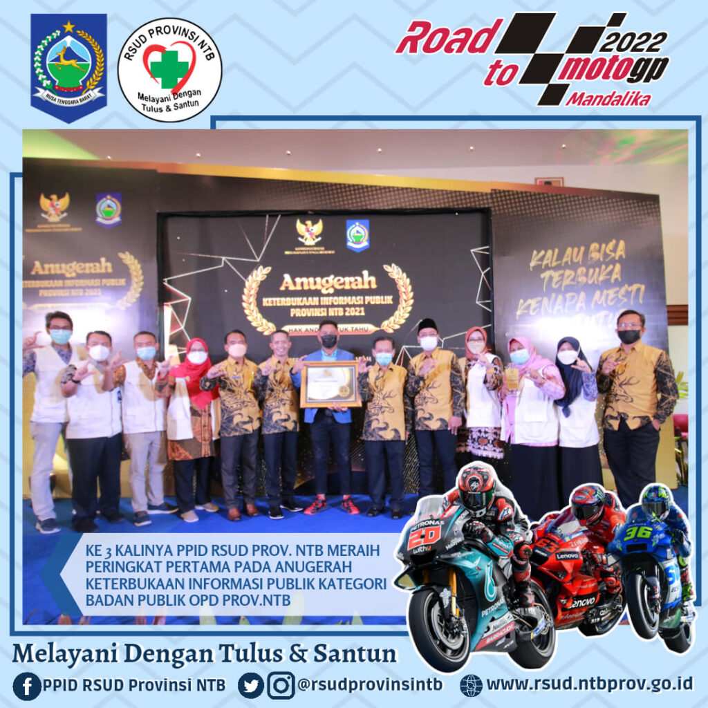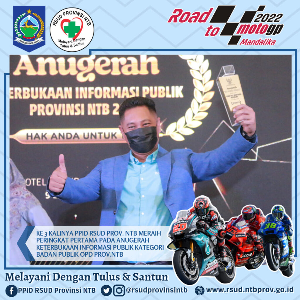 Untuk ke 3 kalinya PPID RSUD Provinsi NTB meraih Peringkat Pertama pada Anugerah Keterbukaan Informasi Publik Kategori Badan Publik OPD Provinsi NTB yang diserahkan langsung oleh Wakil Gubernur Nusa Tenggara Barat di Hotel Grand Legi Mataram.