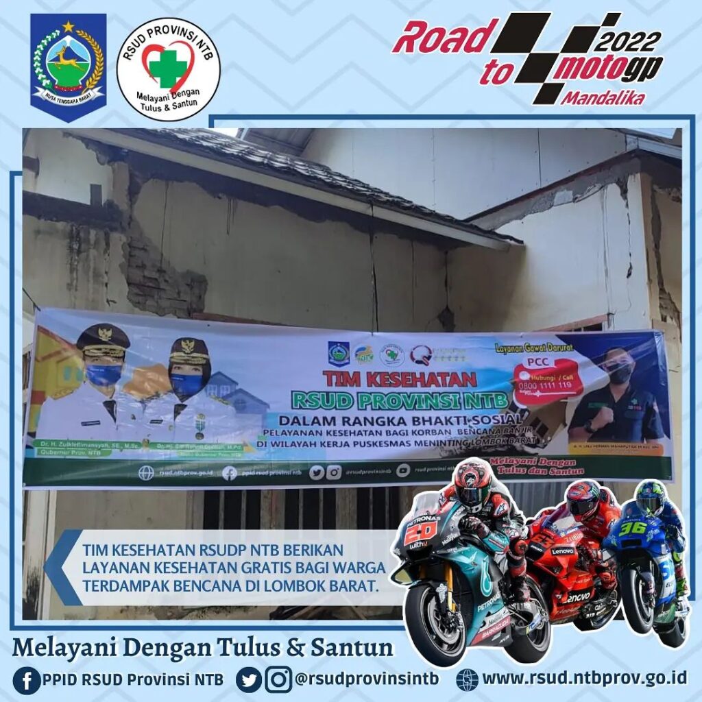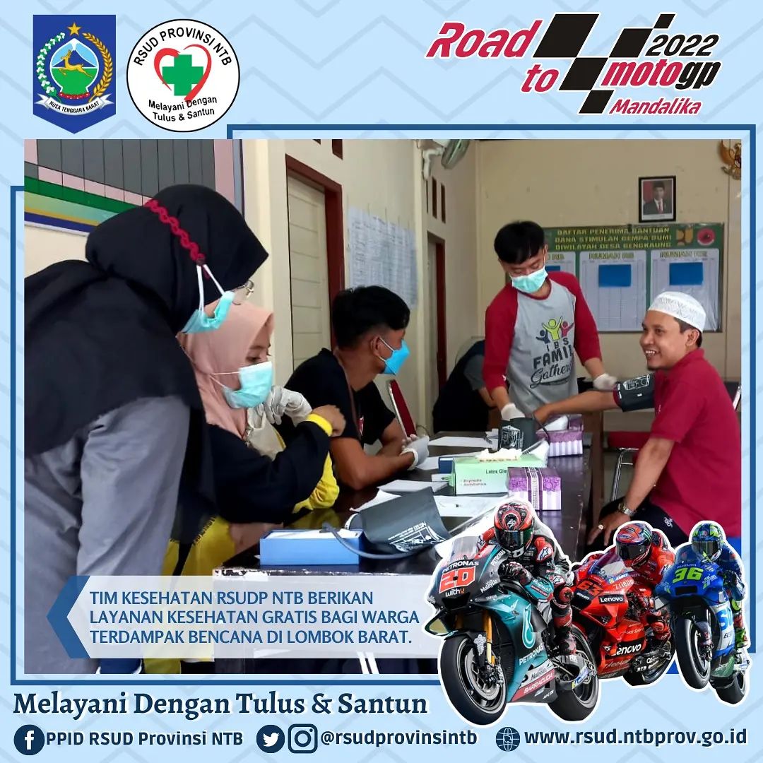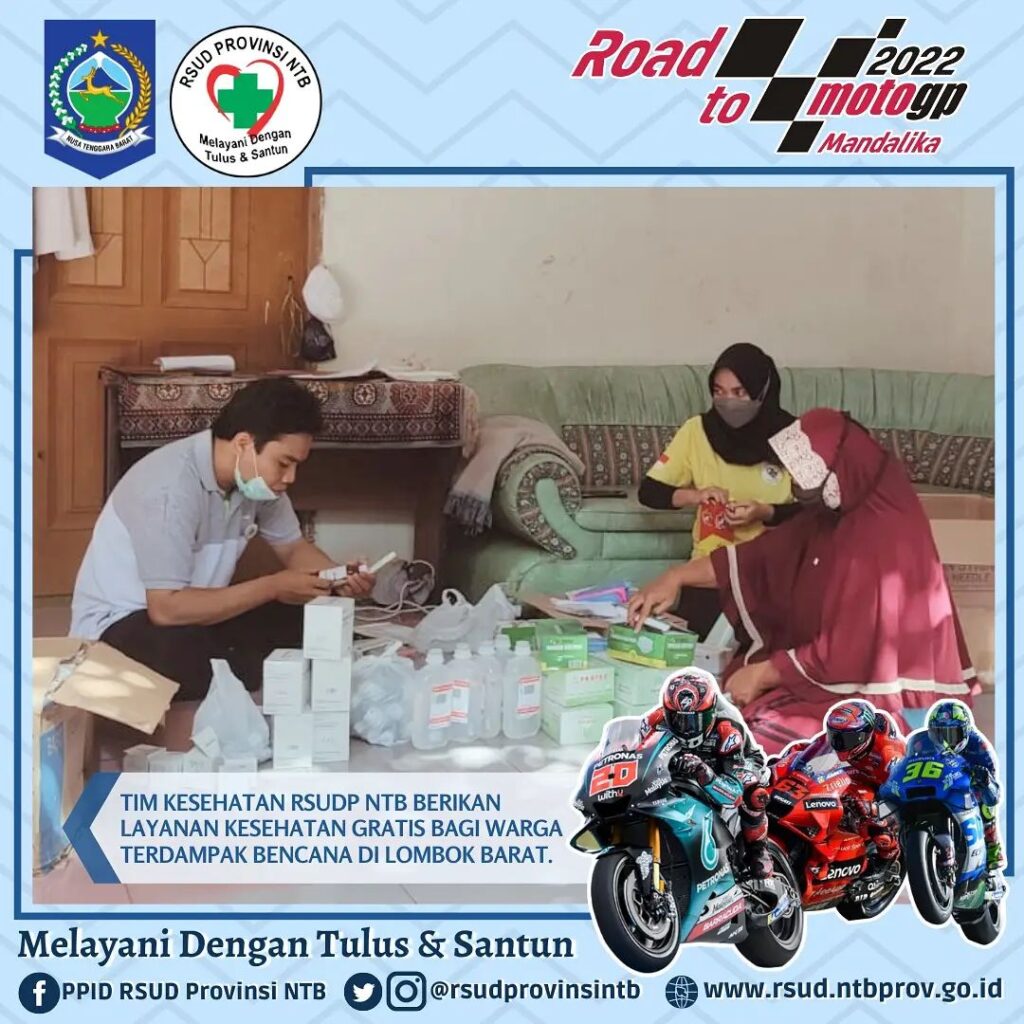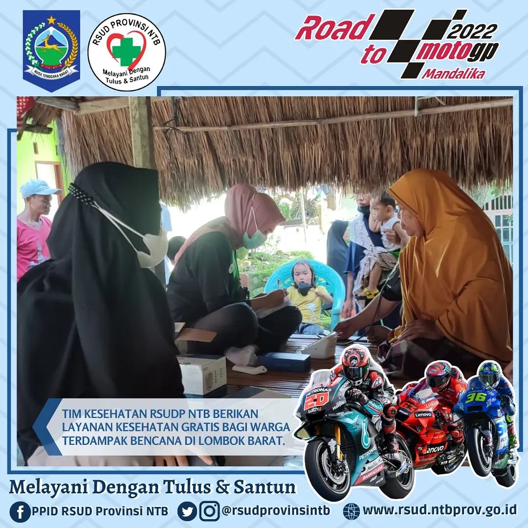 Kemarin Tim Kesehatan RSUD Provinsi NTB melaksanakan Bhakti Sosial berupa Pelayanan Kesehatan Gratis bagi warga terdampak bencana di wilayah kerja Puskesmas Meninting dengan harapan semoga berbagai bentuk ikhtiar ini dapat meringankan sedikit beban saudara kita yang terdampak bencana, amin.