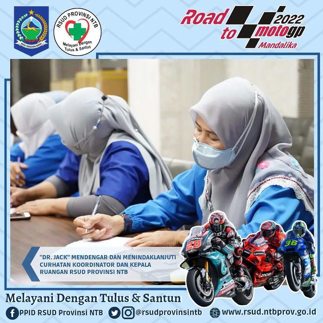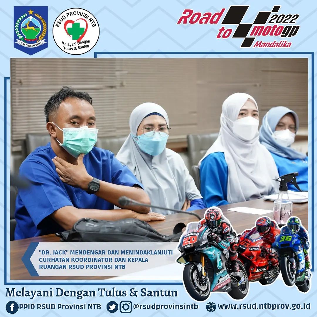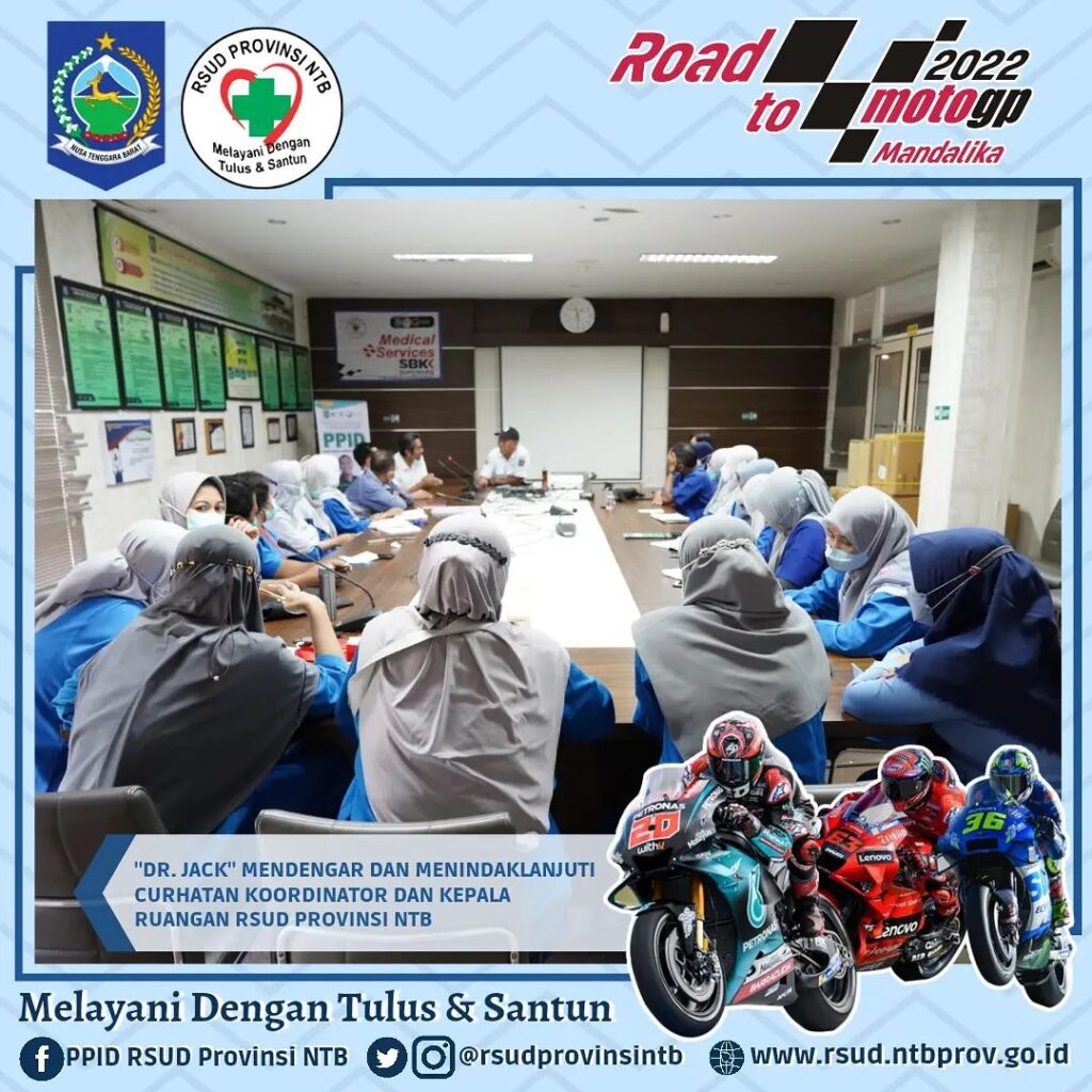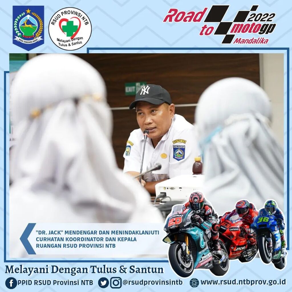 Mendengarkan keluhan dan langsung mencarikan solusi untuk segera di ekskusi adalah gaya kerja dr. Jack selaku Direktur RSUD Provinsi NTB selama ini, hal itu ditunjukkan beliau langsung saat Rapat bersama jajaran Direksi, Manajamen maupun staff selama ini.