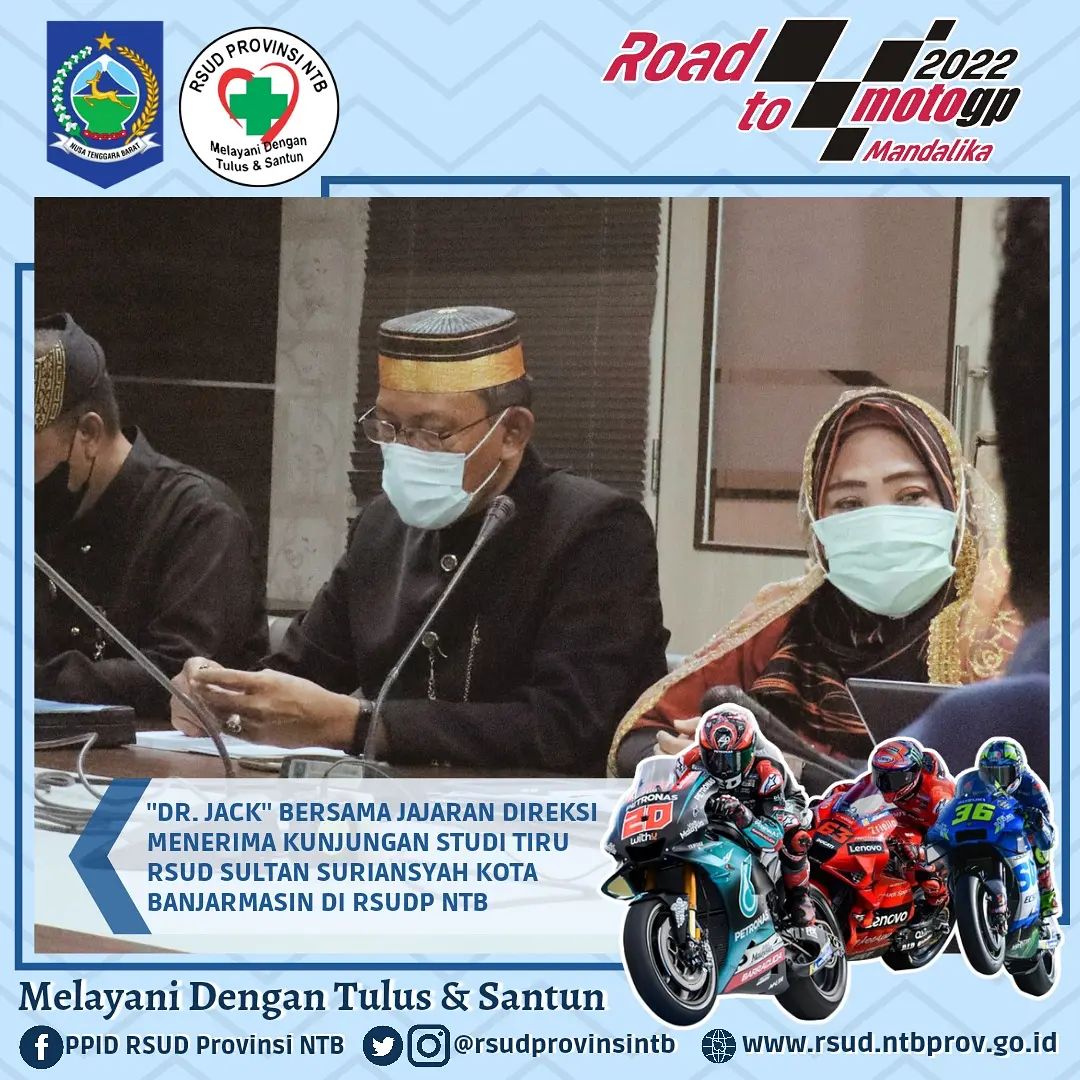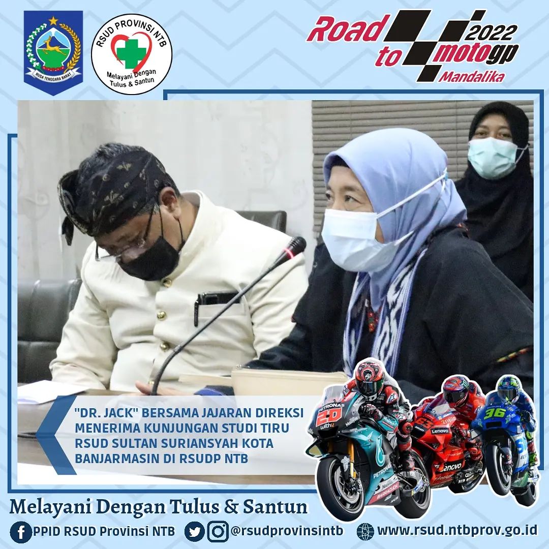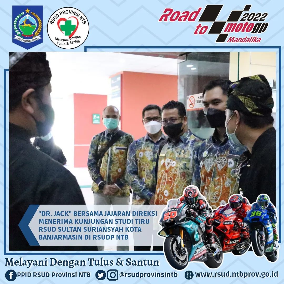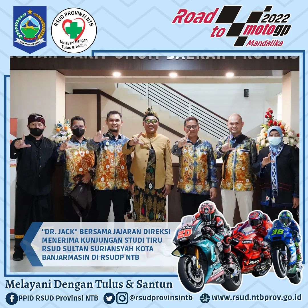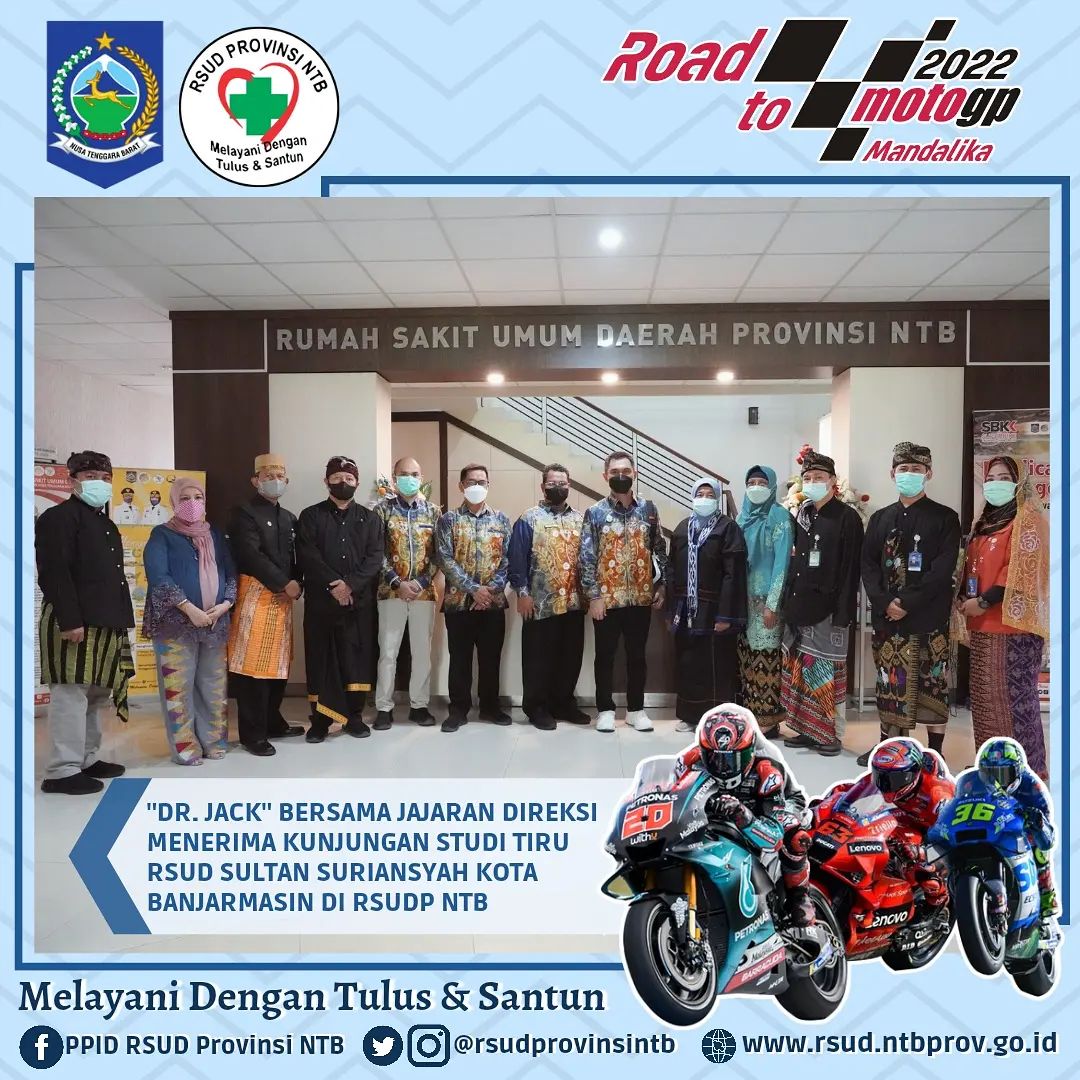 Tepat di Hari Ulang Tahun Ke – 63 Provinsi Nusa Tenggara Barat dr. Jack bersama jajaran Direksi dan Manajemen menerima Kunjungan Studi Tiru Direktur Rumah Sakit Umum Daerah Sultan Suriansyah Kota Banjarmasin bersama rombongan di RSUD Provinsi NTB.