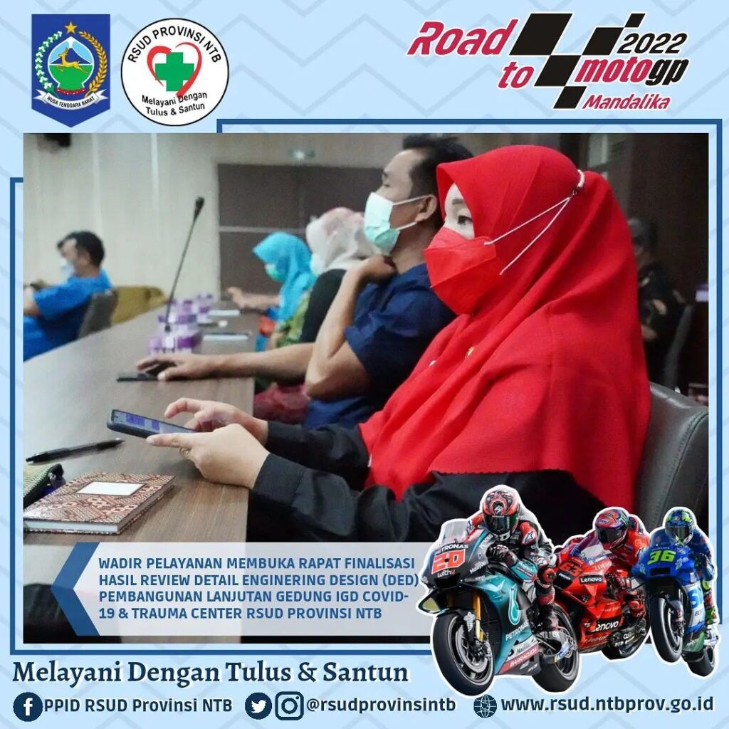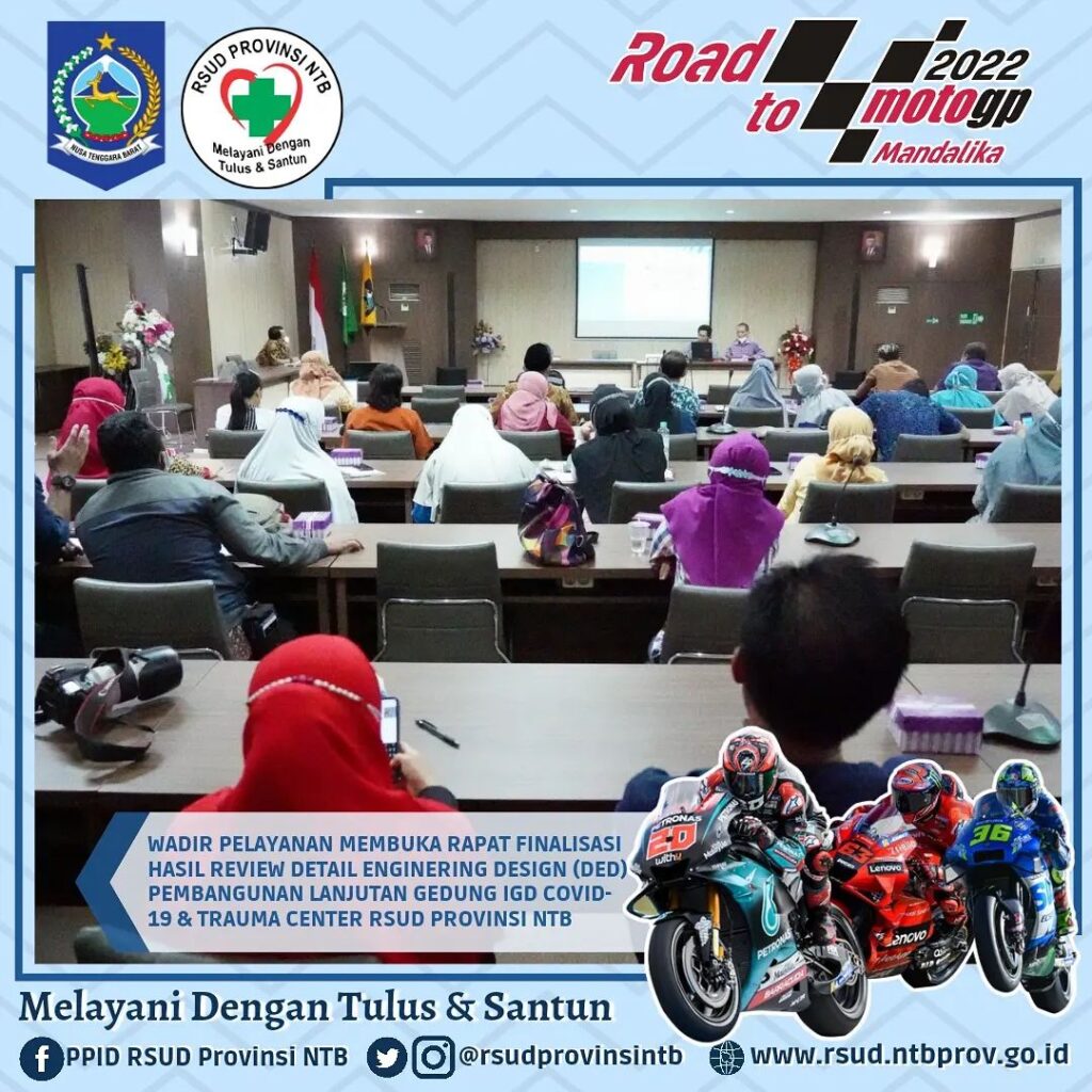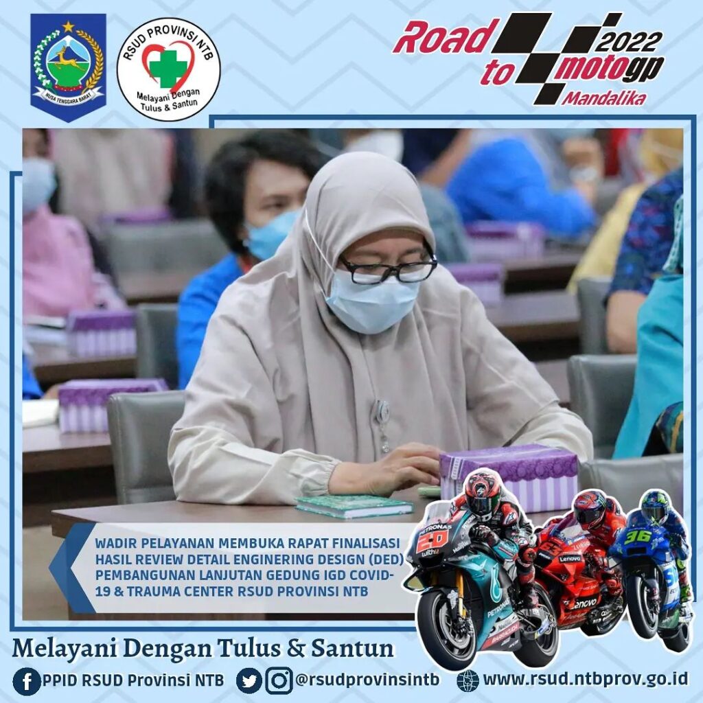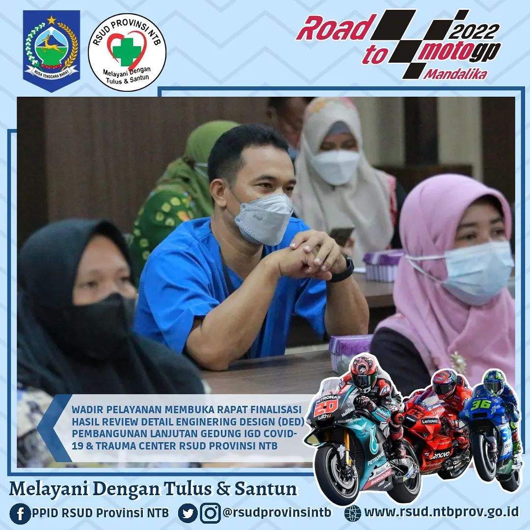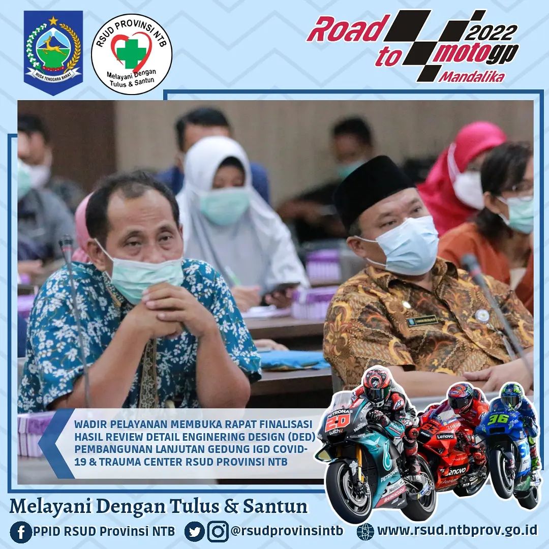Bagian Perencanaan RSUD Provinsi Nusa Tenggara Barat pagi ini melaksanakan Rapat Persentasi Finalisasi Hasil Review Detail Engineering Design (DED) Pembangunan lanjutan Gedung IGD Covid-19 & Trauma Center yang saat ini sudah mulai di fungsikan sebagai Ruang Perawatan Pasien Reguler.