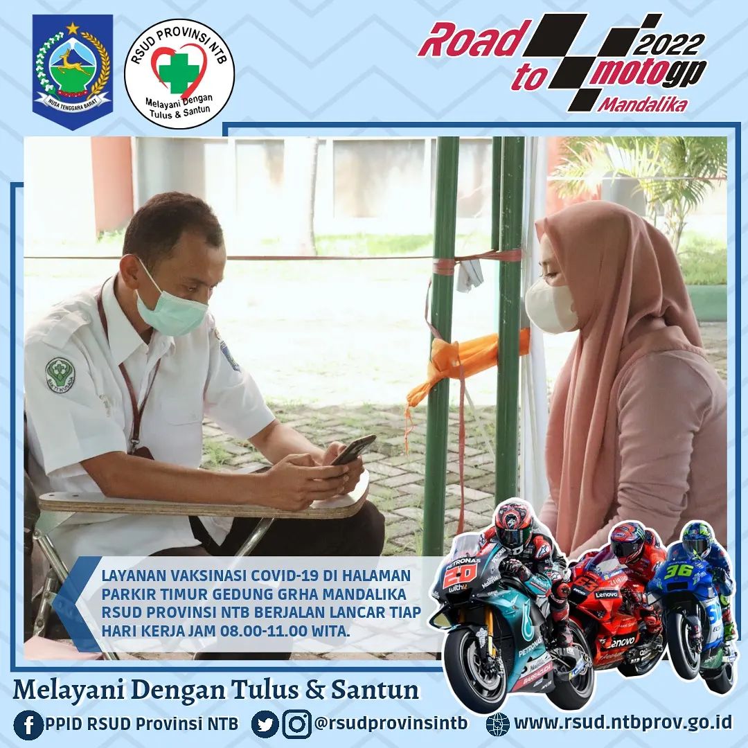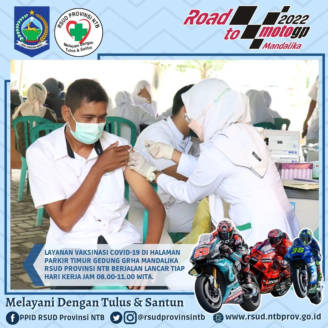 Pelayanan Vaksinasi Covid-19 di Rumah Sakit Umum Daerah Provinsi Nusa Tenggara Barat dilaksanakan setiap Hari Kerja Senin – Sabtu (Minggu & Hari Besar LIBUR) dengan melayani 3 jenis vaksin yang telah tersedia yaitu Sinovac, Pfizer dan Moderna.