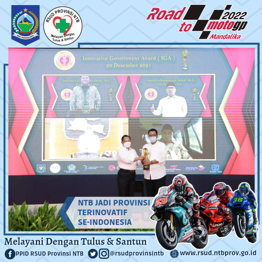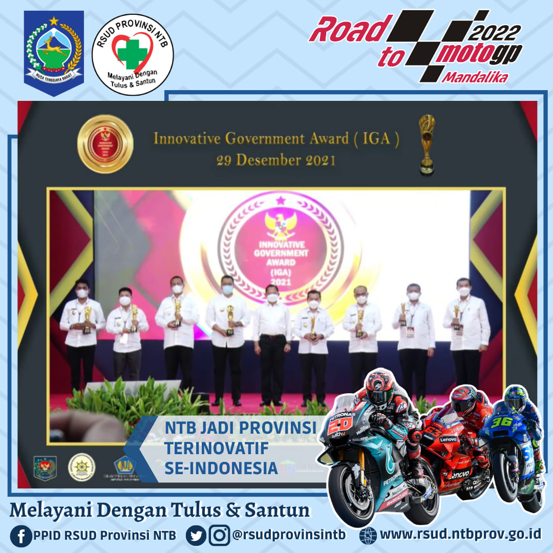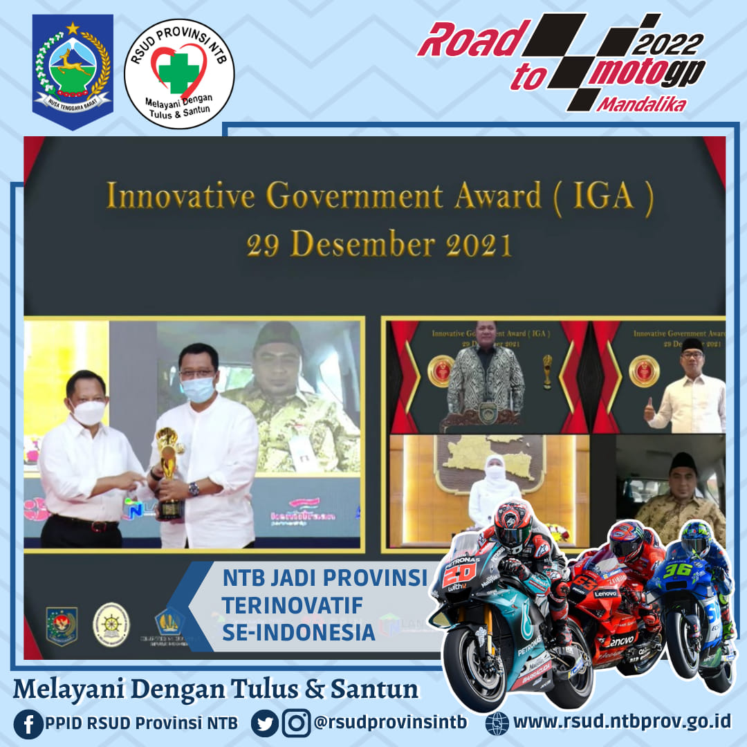 Pada anugerah tersebut, Provinsi NTB masuk dalam kategori Provinsi yang sangat inovatif bersama 6 provinsi lainnya. Dan Provinsi NTB kembali terpilih menjadi Pemda Terinovatif bersama empat provinsi lain setelah melalui berbagai tahapan, yaitu tahapan penjaringan, tahapan pengukuran, tahapan penilaian, validasi lapangan, hingga penetapan dan pemberian penghargaan. Adapun lebih dari 80 inovasi daerah yang didaftarkan dan dinilai menjadi faktor penentu penilaian akhir. NTB Care, NTB satu data, Samsat Apps, adalah contoh inovasi daerah yang menyumbang point tinggi dalam penilaian IGA 2021. (diskominfotikntb)