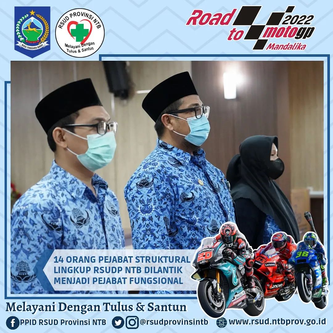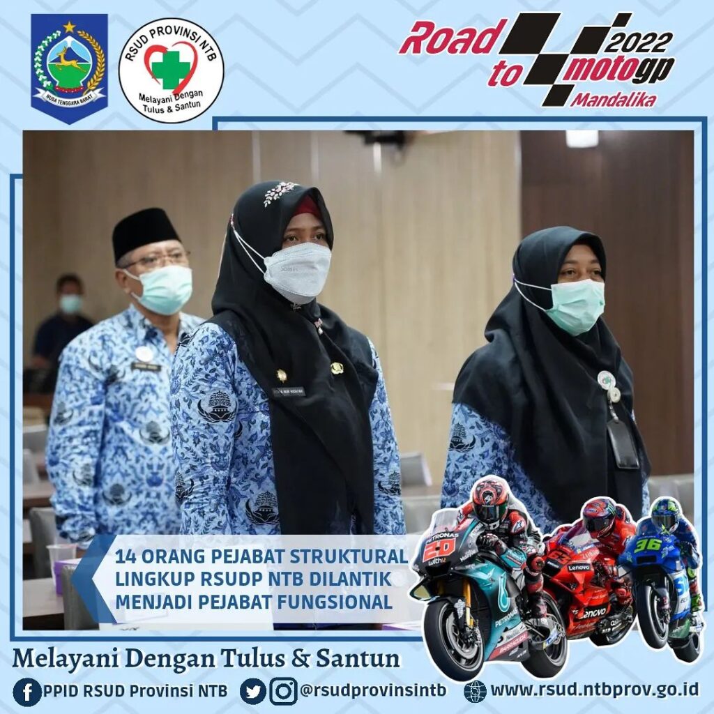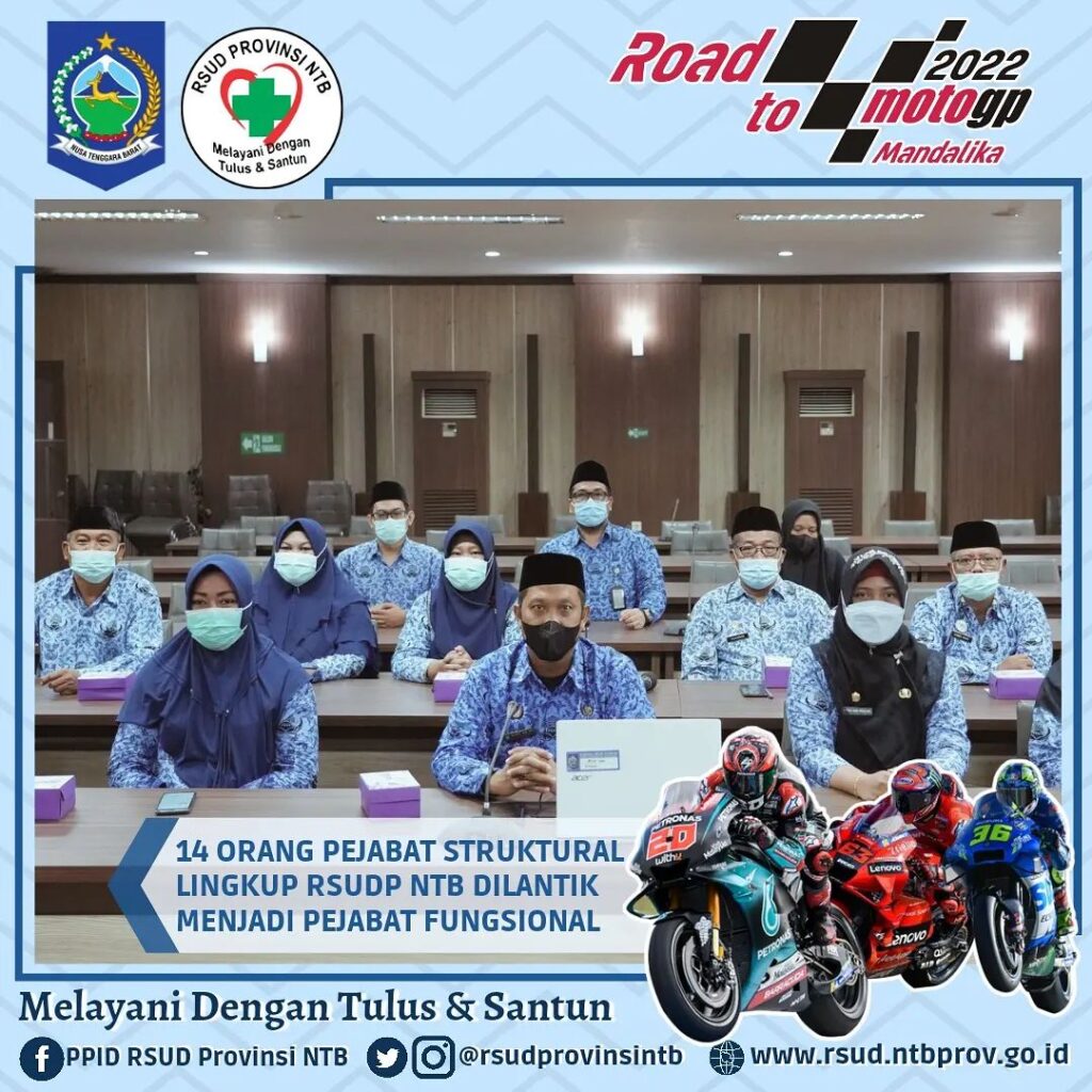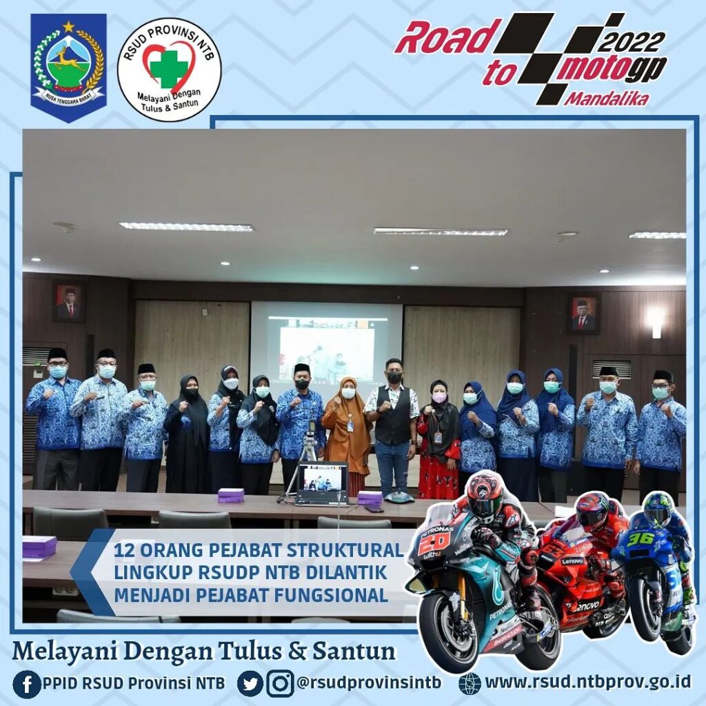 Sebanyak 14 Orang Pejabat Struktural RSUD Provinsi NTB hari ini mengikuti Pengukuhan penyetaraan jabatan Struktural ke fungsional secara virtual dan dihadiri oleh Direktur, Wadir Pelayanan dan Wadir SDM & Diklit di Aula Rinjani Gedung Administrasi dan Manajemen RSUD Provinsi NTB. Provinsi NTB masuk kloter 1 dari 7 Provinsi yang mendapatkan persetujuan dari Kemenpan RB dan Kemendagri. Selanjutnya seluruh Provinsi akan melakukan penyetaraan dimaksud. Ini bagian meningkatkan kinerja dengan mulai melakukan penataan unsur unsur manajemen dari aspek man, money, metode termasuk proses pengembangan jabatan fungsional ke depan termasuk Mesin. Sekda Provinsi NTB dalam sambutannya menyampaikan Jabatan fungsional bukan terminal terakhir sesuai kapasitas dan tuntutan kebutuhan organisasi dari jabatan fungsional dapat dilakukan migrasi kembali ke jabatan struktur ataupun sebaliknya. Ini adalah langkah awal penataan birokrasi dalam rangka meningkatkan kinerja dan Pelayanan publik.