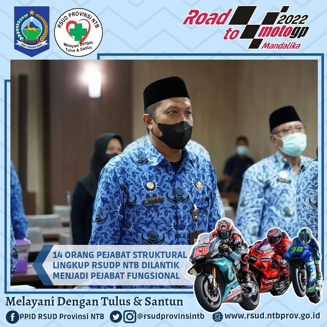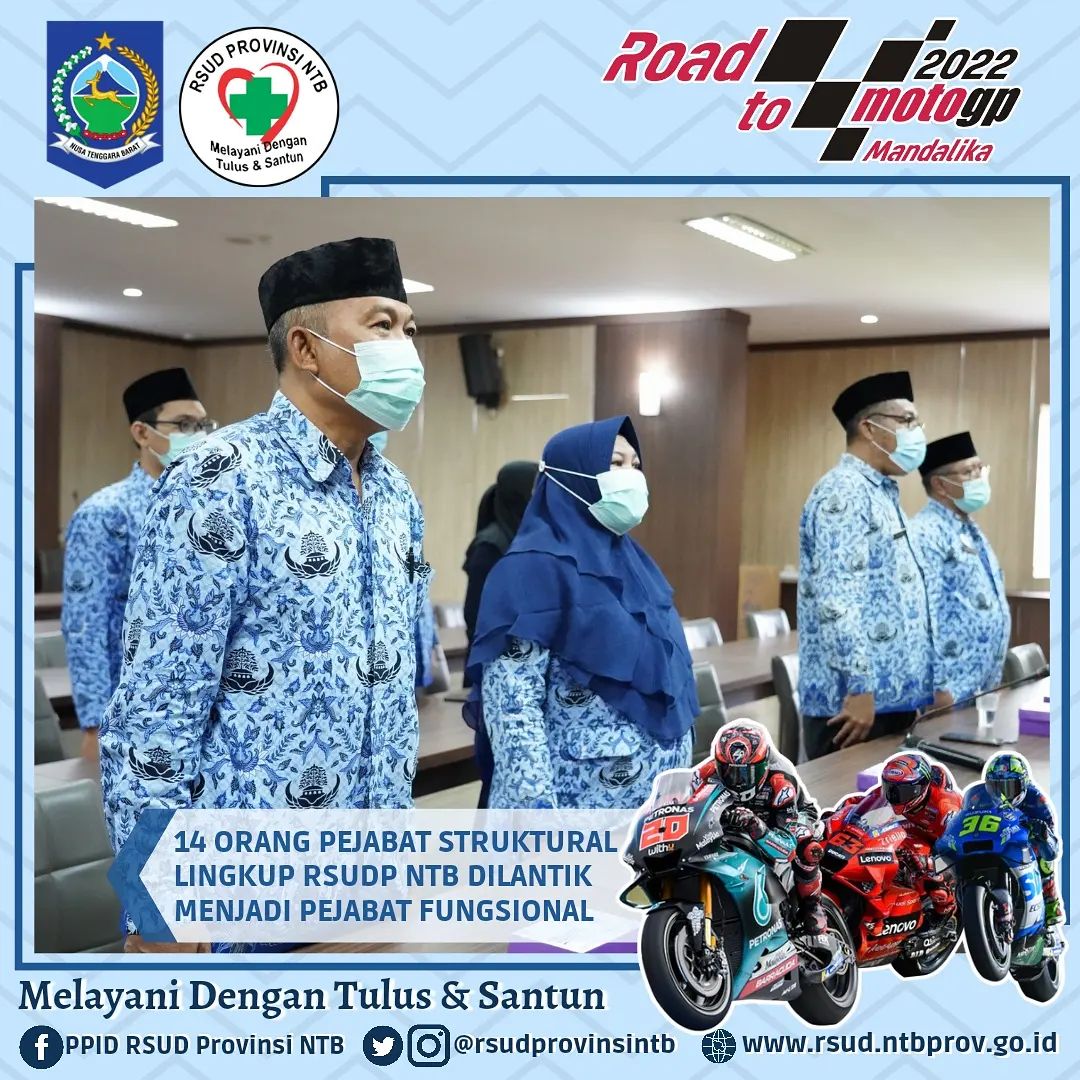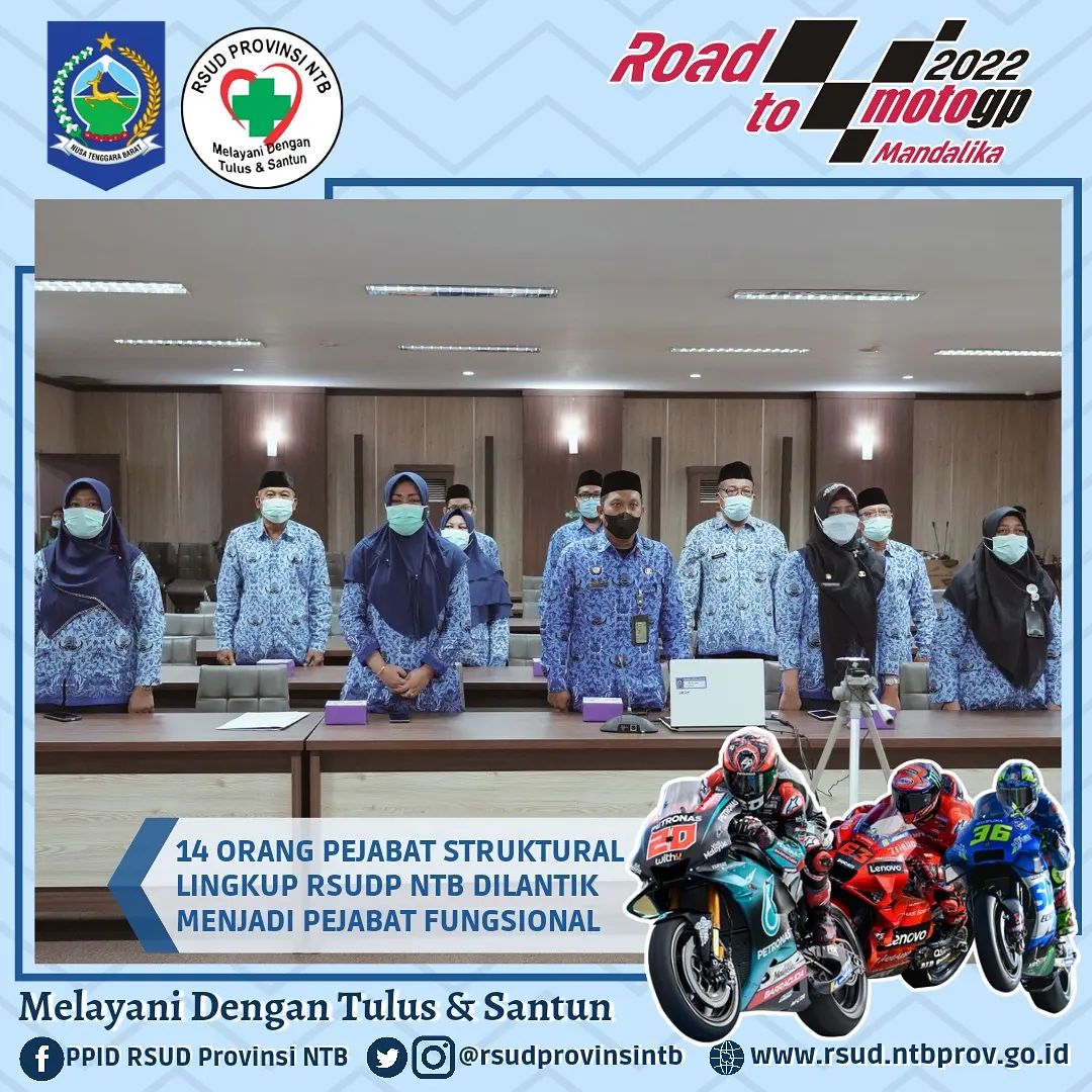 Sebanyak 14 Orang Pejabat Struktural RSUD Provinsi NTB hari ini mengikuti Pengukuhan penyetaraan jabatan Struktural ke fungsional secara virtual dan dihadiri oleh Direktur, Wadir Pelayanan dan Wadir SDM & Diklit di Aula Rinjani Gedung Administrasi dan Manajemen RSUD Provinsi NTB. Provinsi NTB masuk kloter 1 dari 7 Provinsi yang mendapatkan persetujuan dari Kemenpan RB dan Kemendagri. Selanjutnya seluruh Provinsi akan melakukan penyetaraan dimaksud. Ini bagian meningkatkan kinerja dengan mulai melakukan penataan unsur unsur manajemen dari aspek man, money, metode termasuk proses pengembangan jabatan fungsional ke depan termasuk Mesin. Sekda Provinsi NTB dalam sambutannya menyampaikan Jabatan fungsional bukan terminal terakhir sesuai kapasitas dan tuntutan kebutuhan organisasi dari jabatan fungsional dapat dilakukan migrasi kembali ke jabatan struktur ataupun sebaliknya. Ini adalah langkah awal penataan birokrasi dalam rangka meningkatkan kinerja dan Pelayanan publik.
