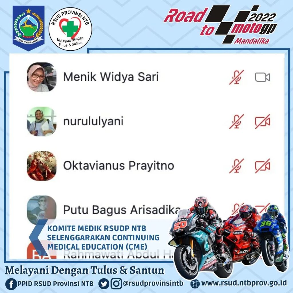 Selain itu, tujuan Kegiatan yang dilaksanakan tadi pagi tersebut juga dihajatkan sebagai sarana komunikasi antara Teman Sejawat Dokter dengan Manajemen RSUDP NTB. CME ini dimulai sejak bulan Juli 2019 dalam bentuk acara offline di Ruang Pertemuan lantai 2 gedung IGD. Sejak masa pandemi acara ini dialihkan menjadi kegiatan virtual melalui aplikasi Zoom dengan Host dari Teman sejawat yang berasal dari sub komite mutu profesi Komite Medik.