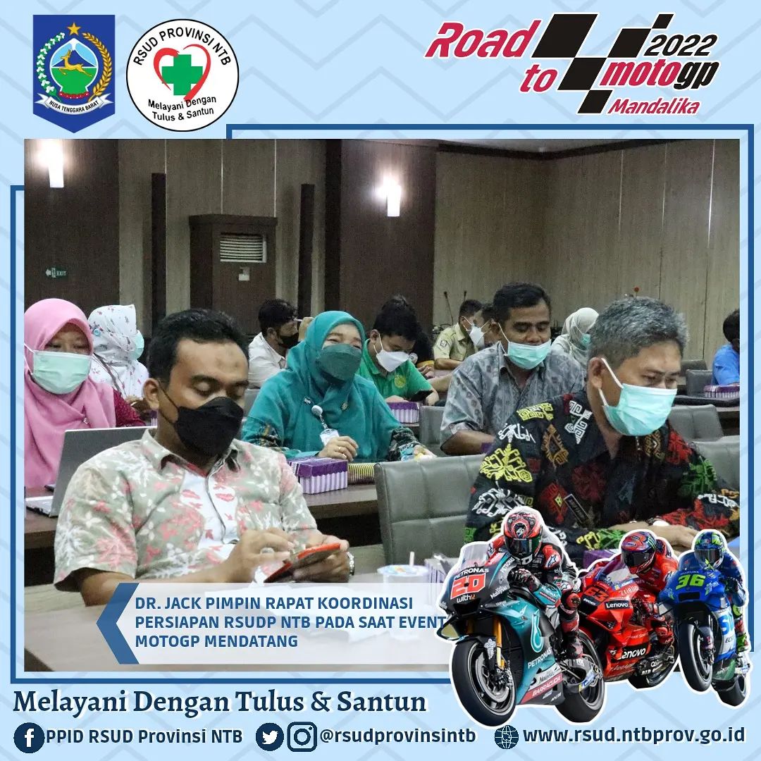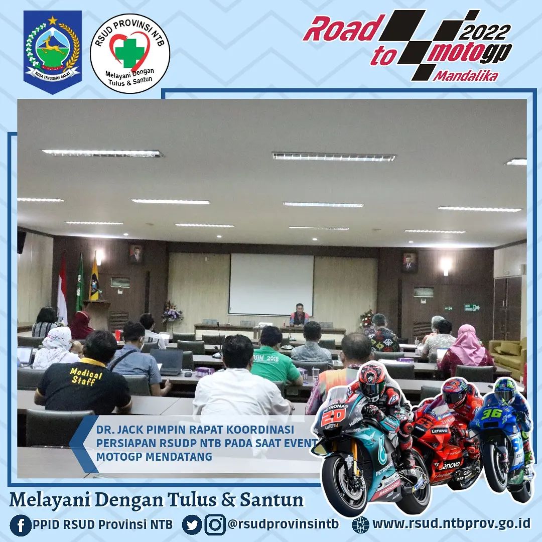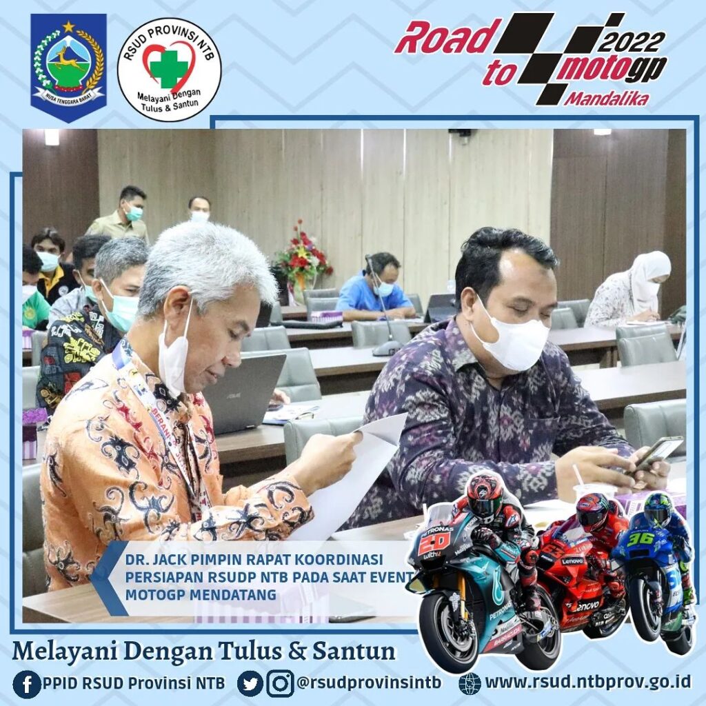Mengawali Kegiatan di Awal Tahu dr. Jack memimpin Rapat Koordinasi bersama jajaran Direksi, Manajemen dan Civitas Hospitalia RSUD Provinsi NTB terkait berbagai hal perkembangan dan persiapan gelaran Event Internasional MotoGP yang akan di mulai dengan Test Pra Musim pada Februari mendatang di Pertamina Mandalika International Street Circuit.