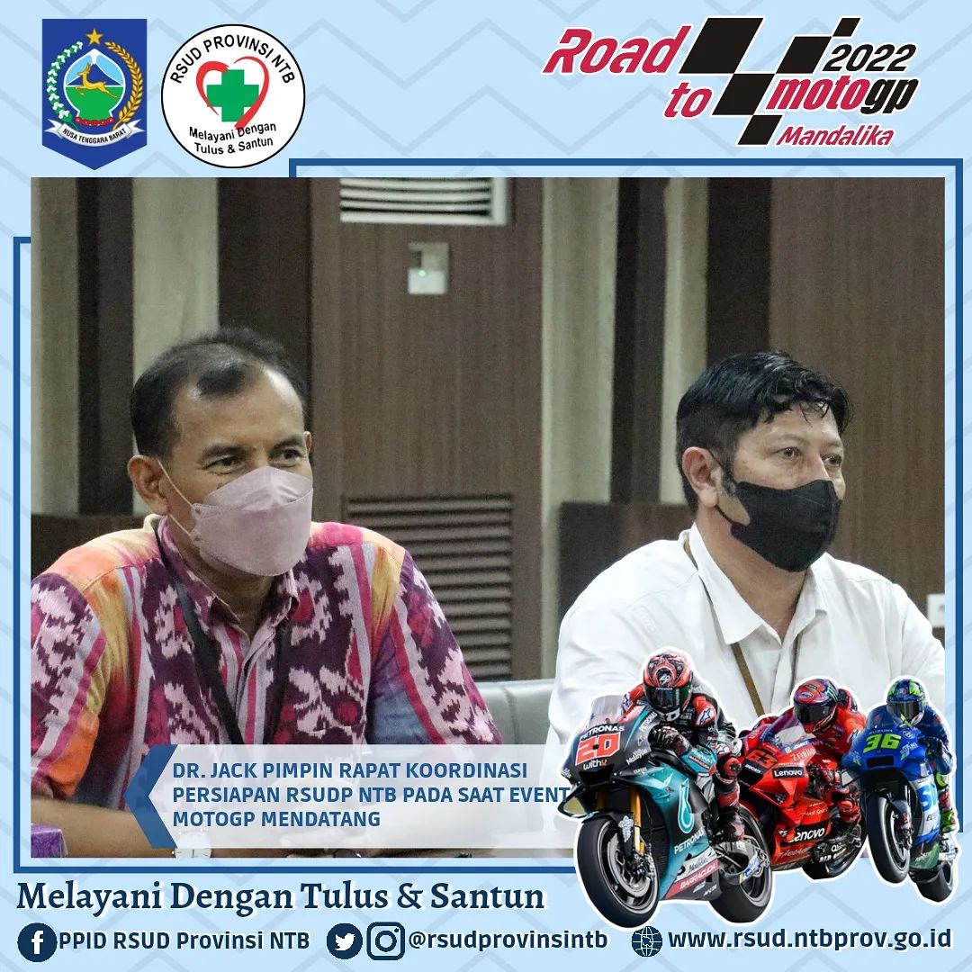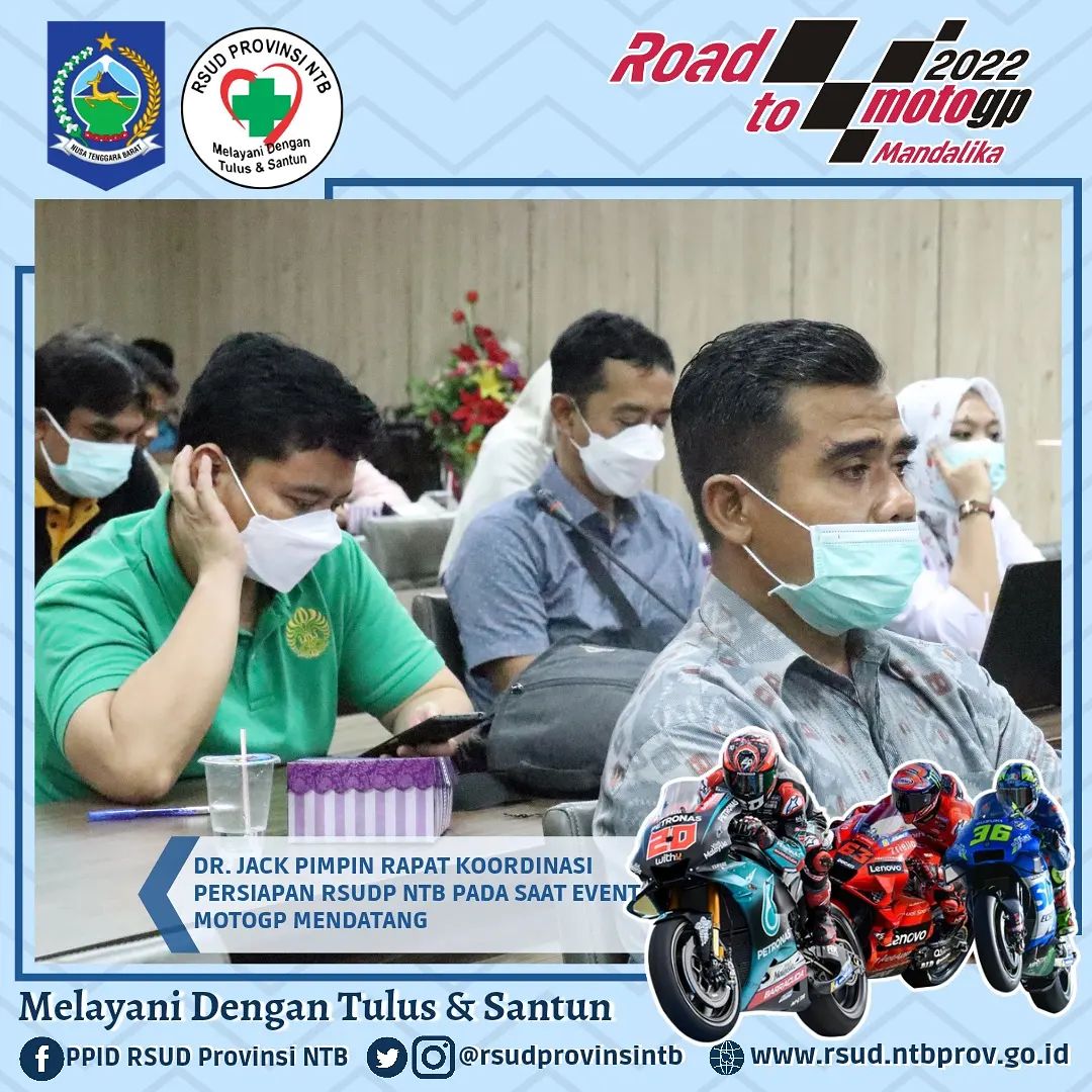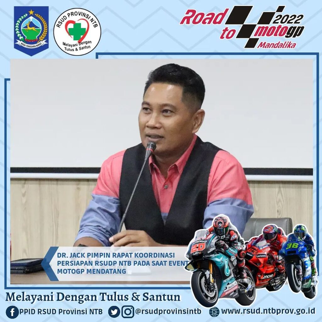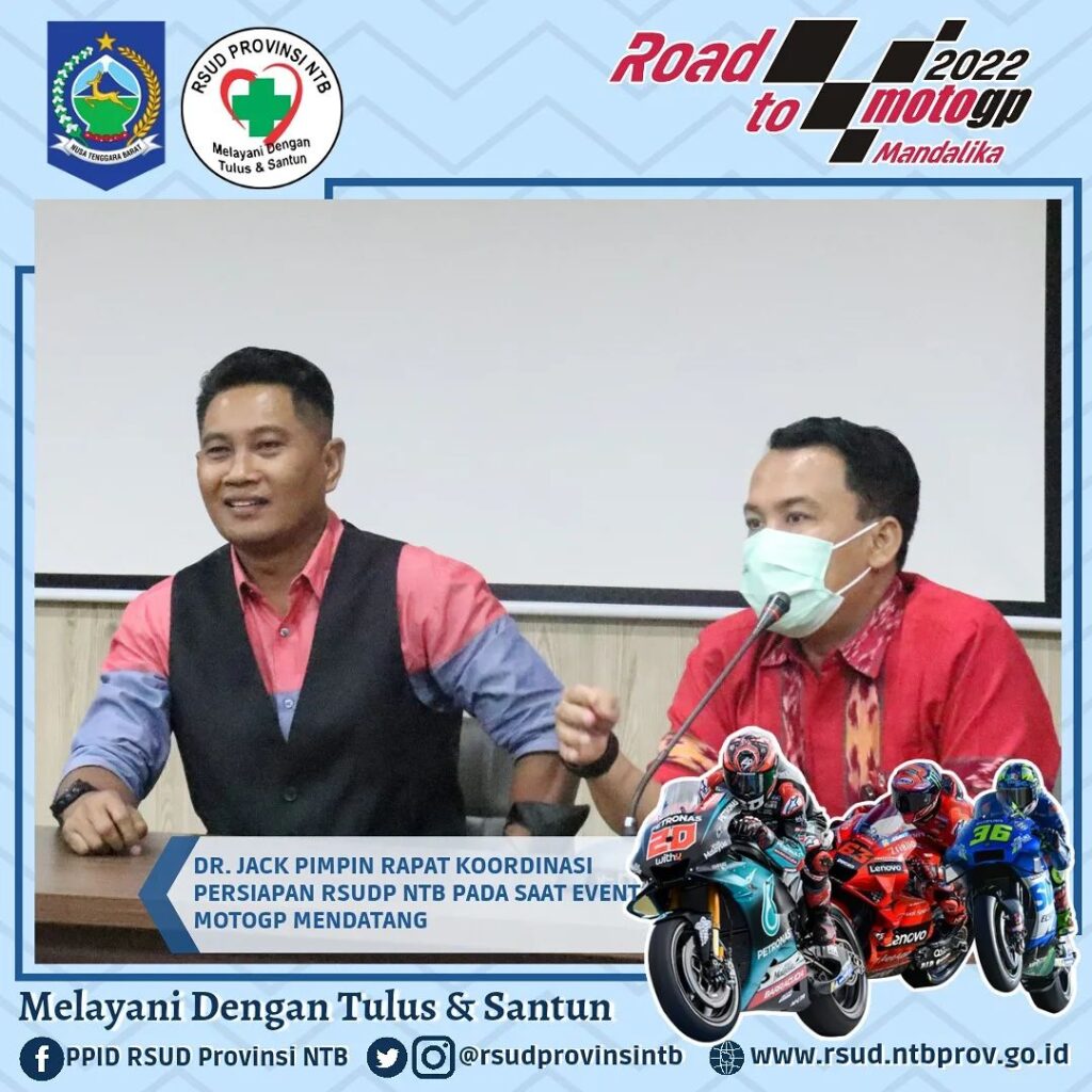 Mengawali Kegiatan di Awal Tahu dr. Jack memimpin Rapat Koordinasi bersama jajaran Direksi, Manajemen dan Civitas Hospitalia RSUD Provinsi NTB terkait berbagai hal perkembangan dan persiapan gelaran Event Internasional MotoGP yang akan di mulai dengan Test Pra Musim pada Februari mendatang di Pertamina Mandalika International Street Circuit.