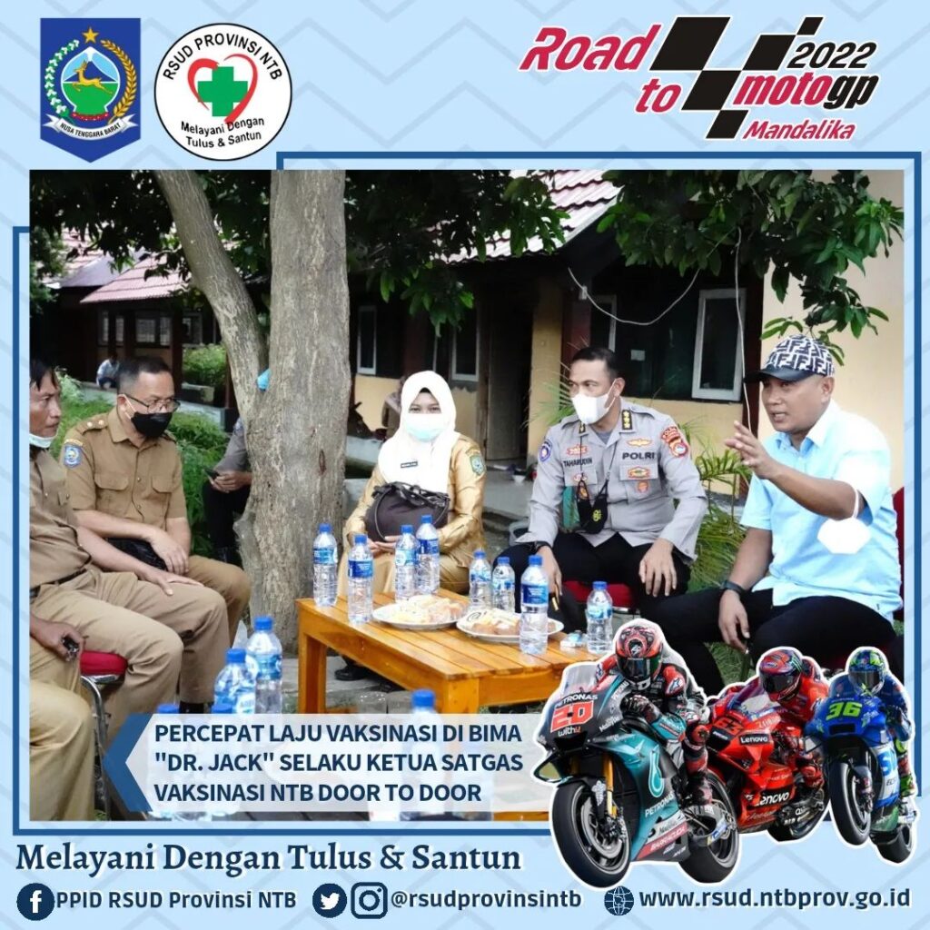 Meningkatnya kasus Covid-19 di Nusa Tenggara Barat dan masih rendahnya cakupan vaksin anak, dosis kedua dan bioster di Kabupaten Bima dan sekitarnya membuat dr. Jack selaku Ketua Satgas Percepatan Vaksinasi Covid-29 Nusa Tenggara Barat berkolaborasi dengan Jajaran Polda NTB melaksanakan kegiatan Gempur Vaksinasi di Wilayah Bima.