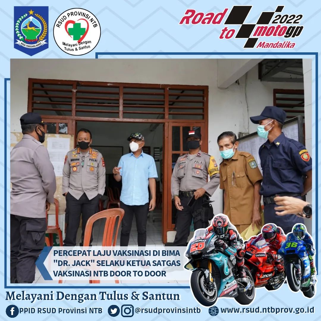 Dengan sistem Door to Door dr. Jack bersama satgas percepatan vaksinasi dan Polda NTB berhasil menaikkan jumlah cakupan Vaksinasi, kegiatan ini akan dilangsungkan seminggu kedepan dengan melibatkan Tim Vaksinator Covid-19 yang berasal dari RSUD Provinsi NTB, Bidokkes Polda NTB dan Dinkes setempat.