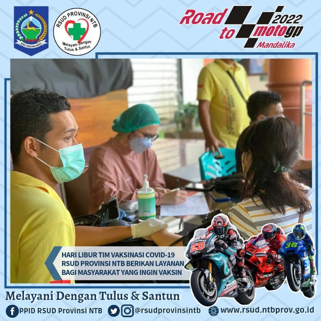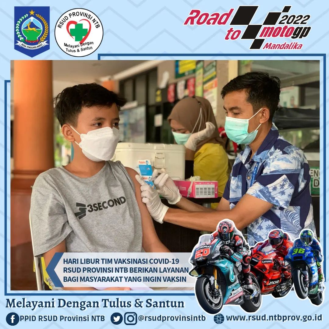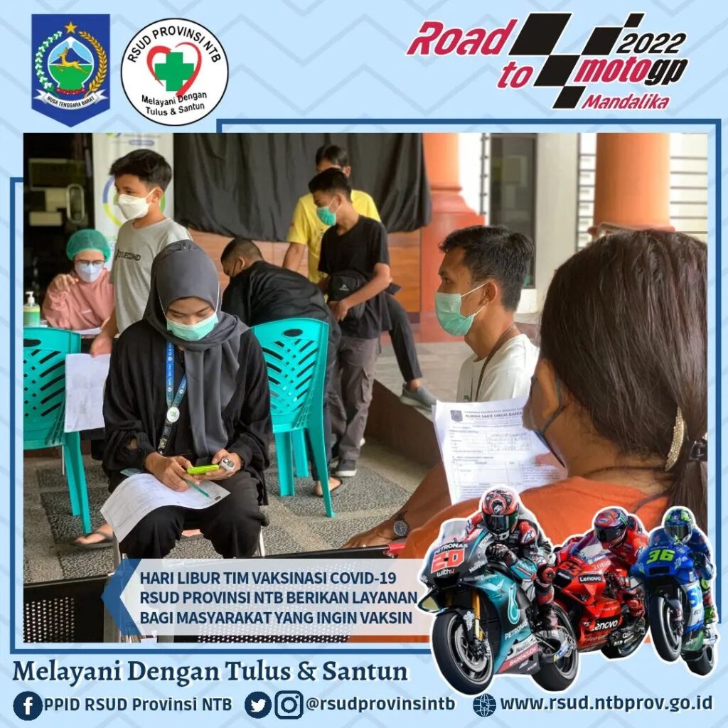 Percepatan Vaksinasi Covid-19 di Nusa Tenggara Barat khususnya dosis kedua dan Booster terus dikebut oleh Tim Vaksinasi RSUD Provinsi NTB, untuk mengejar target dan memberikan kesempatan bagi masyarakat yang belum mendapatkan vaksin covid-19 terlebih dihari Libur seperti hari ini Tim Vaksinasi Covid-19 RSUDP NTB melaksanakan giat Gebyar Vaksinasi.