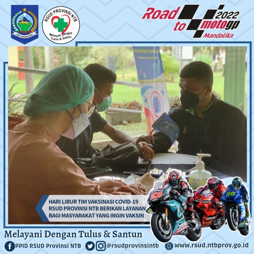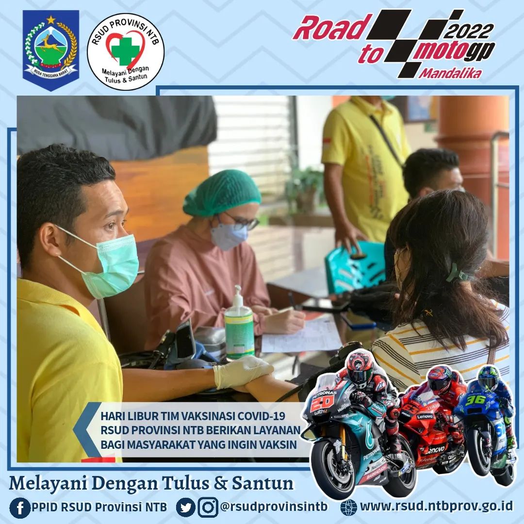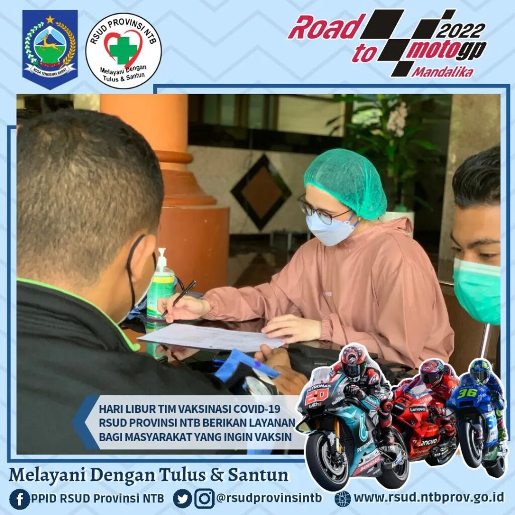 Percepatan Vaksinasi Covid-19 di Nusa Tenggara Barat khususnya dosis kedua dan Booster terus dikebut oleh Tim Vaksinasi RSUD Provinsi NTB, untuk mengejar target dan memberikan kesempatan bagi masyarakat yang belum mendapatkan vaksin covid-19 terlebih dihari Libur seperti hari ini Tim Vaksinasi Covid-19 RSUDP NTB melaksanakan giat Gebyar Vaksinasi.