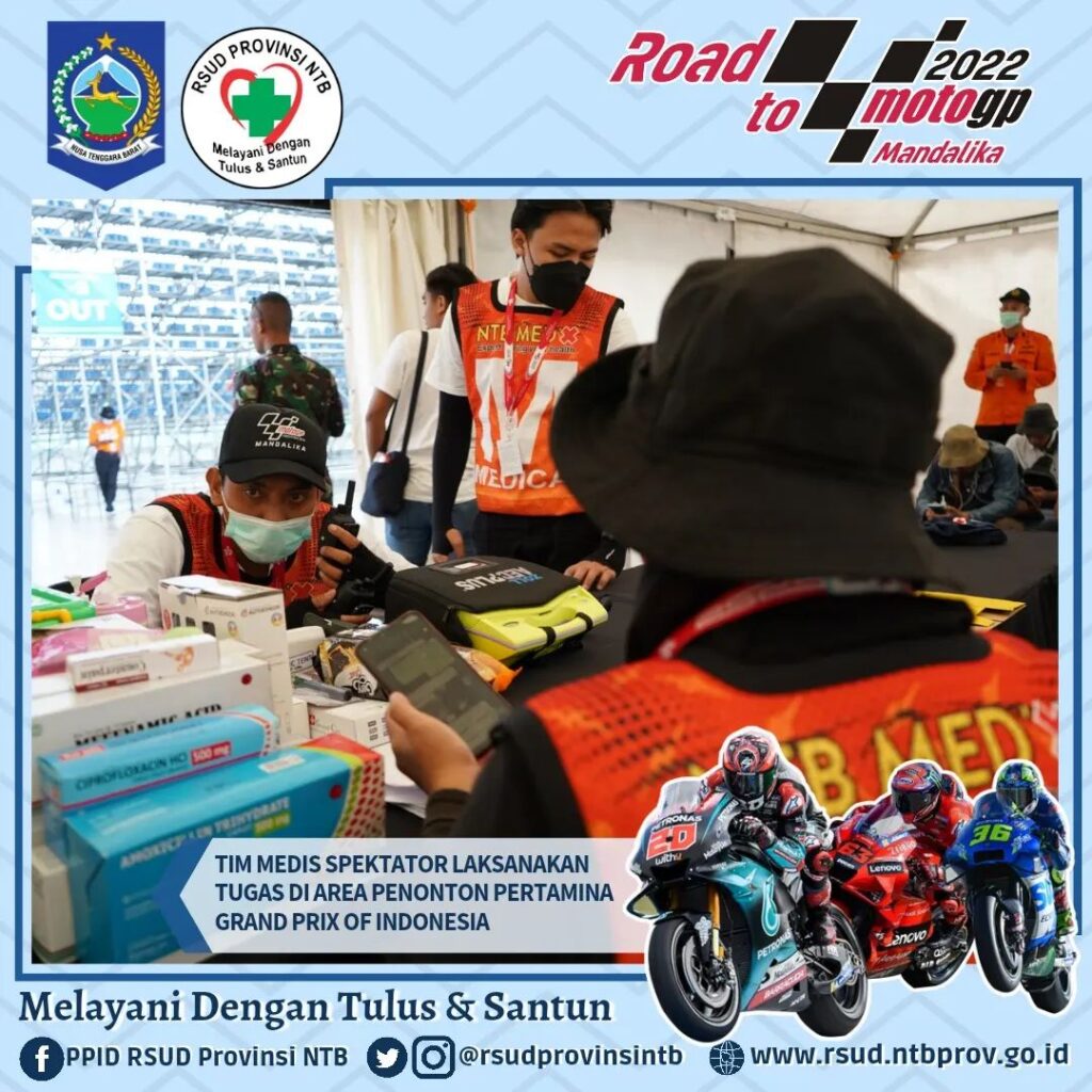 Tim Medis Ekspektator yang bertugas di Area Penonton sejak hari Jum’at sudah mulai hadir di Pertamina Mandalika International Street Circuit, di Hari Pertama dan Kedua Pelaksanaan Pertamina Grand Prix of Indonesia 2022 dengan agenda Free Practice dan Qualification seluruh Tim Medis sejak pagi sudah mempersiapkan diri di Mini Clinic untuk disebar ke bebepara zona tenda medis.
