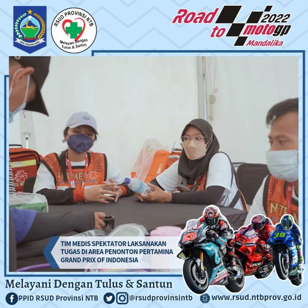 Tim Medis yang di koordinir oleh RSUD Provinsi NTB ini merupakan gabungan dari Tim Medis yang bertugas di beberapa Rumah Sakit dan Puskesmas di Nusa Tenggara Barat. Kolaboraksi ini akan terus dijalin agar berbagai event Internasional maupun nasional yang akan di selenggarakan di NTB berjalan dengan sukses.