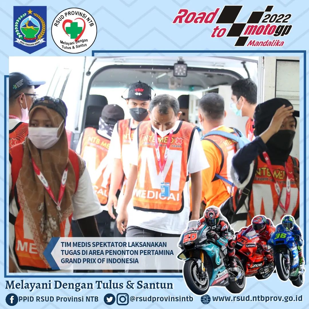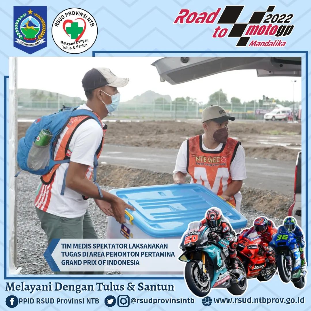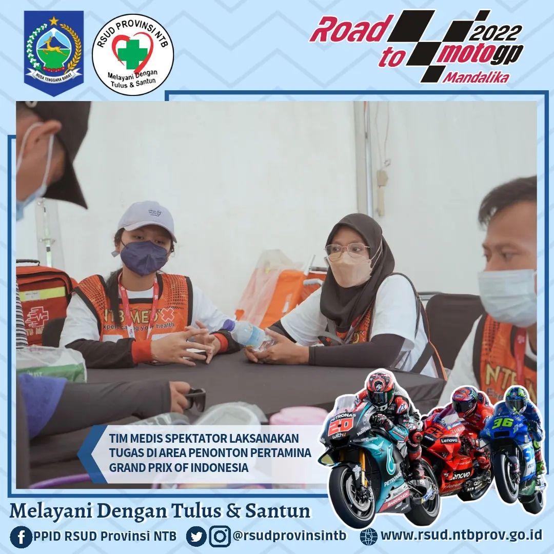 Tim Medis Ekspektator yang bertugas di Area Penonton sejak hari Jum’at sudah mulai hadir di Pertamina Mandalika International Street Circuit, di Hari Pertama dan Kedua Pelaksanaan Pertamina Grand Prix of Indonesia 2022 dengan agenda Free Practice dan Qualification seluruh Tim Medis sejak pagi sudah mempersiapkan diri di Mini Clinic untuk disebar ke bebepara zona tenda medis.