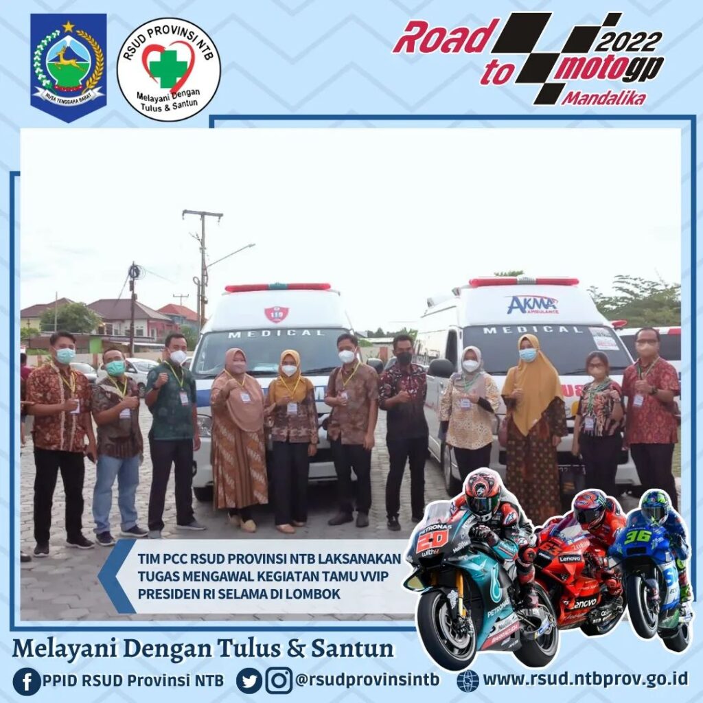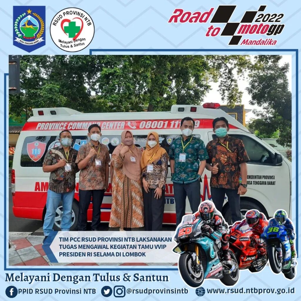 Tim Medis PCC RSUD Provinsi NTB kemarin menjalankan tugas mengawal kegiatan Kunjungan Kerja VVIP Presiden Republik Indonesia di Pertamina Mandalika International Street Circuit. Presiden Republik Indonesia menghadiri Closing Ceremony Pertamina Grand Prix of Indonesia.