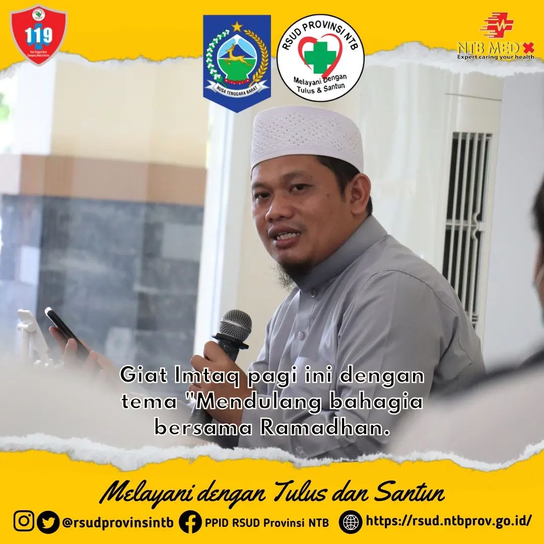 Dalam rangka meningkatkan keimanan dan ketaqwaan kepada ALLAH SWT setiap hari Jum’at rutin dilaksanakan kegiatan Imtaq yang diikuti oleh Jajaran Direksi, Manajemen dan Civitas Hospitalia di Masjid As – Syifa RSUD Provinsi NTB.