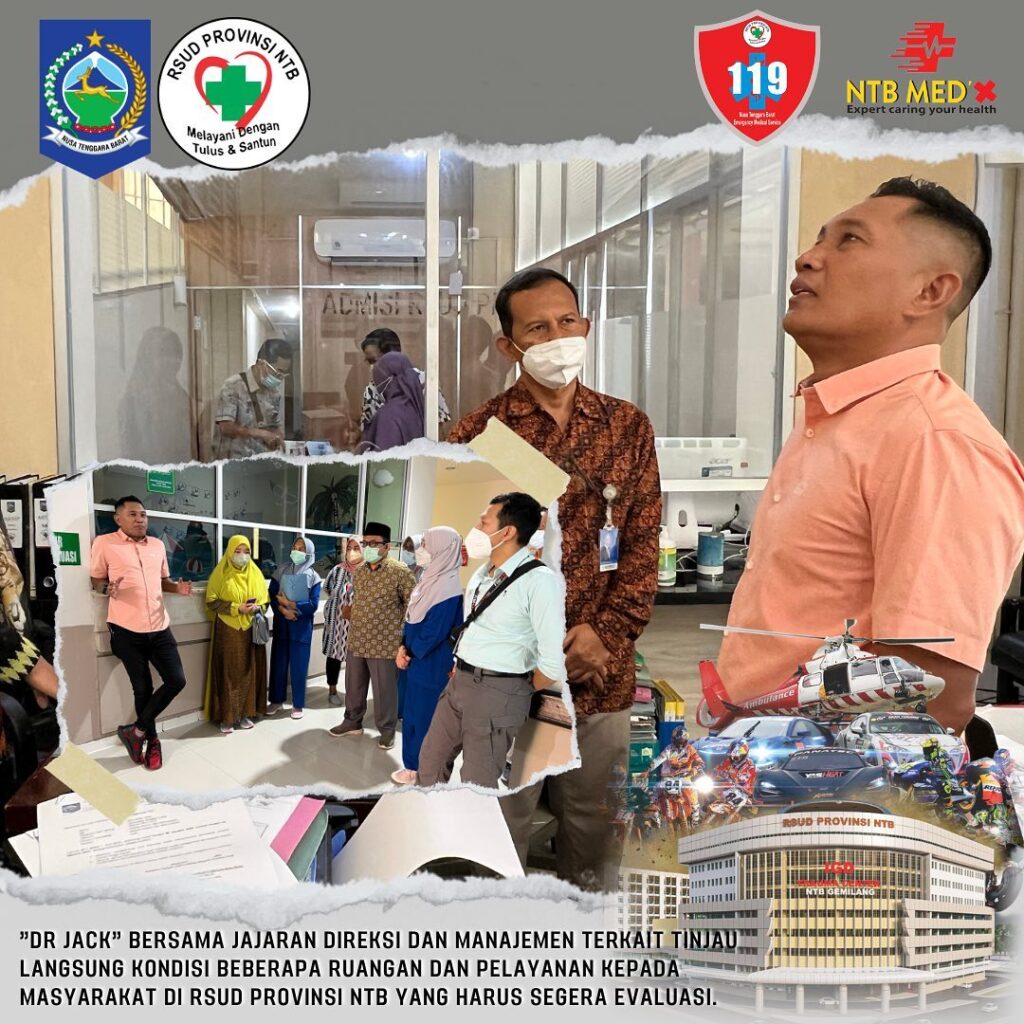 Demi memberikan pelayanan terbaik bagi masyarakat di RSUD Provinsi NTB hari ini “dr. Jack” bersama jajaran Direksi dan Manajemen berkeliling meninjau langsung kondisi beberapa ruangan dan Fasilitas penunjang yang ada di RSUD Provinsi NTB.