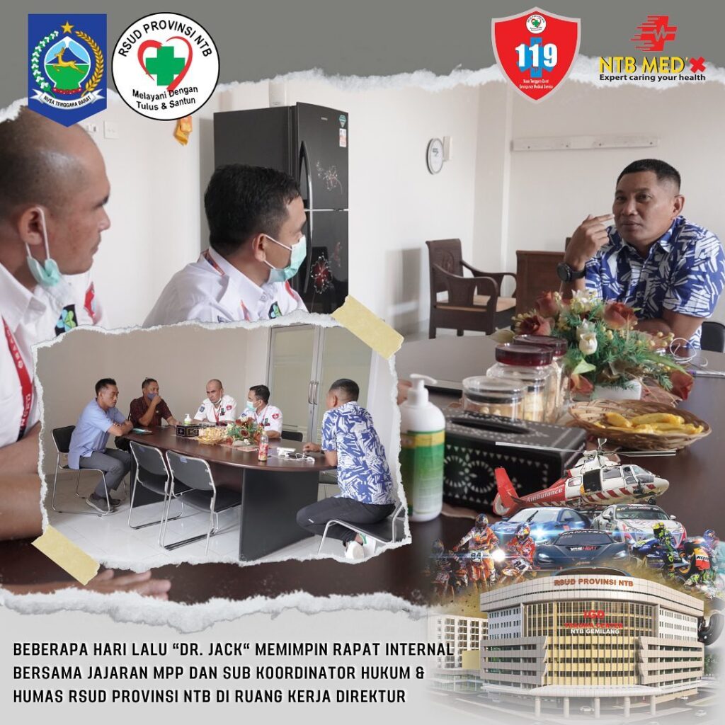 dr. Jack beberapa hari lalu memimpin Rapat Internal bersama jajaran MPP dan Sub Koordinator Hukum dan Humas RSUD Provinsi NTB guna berkoordinasi terkait Layanan Prehospital yang sedang terus dikembangkan untuk mempermudah masyarakat.