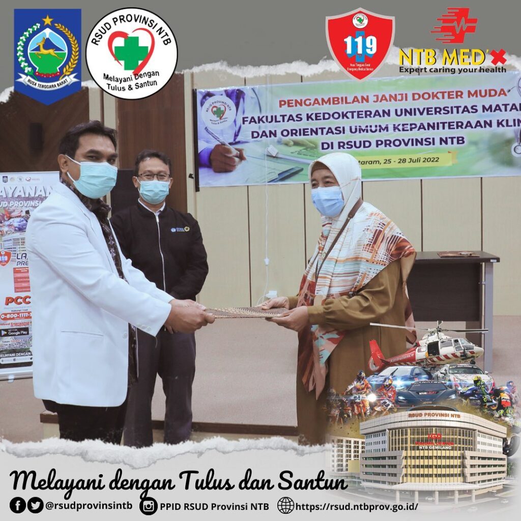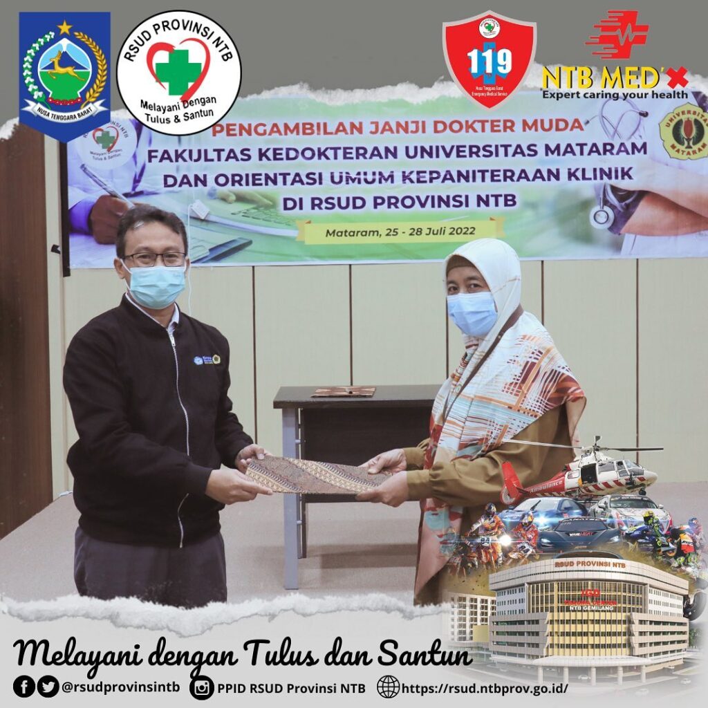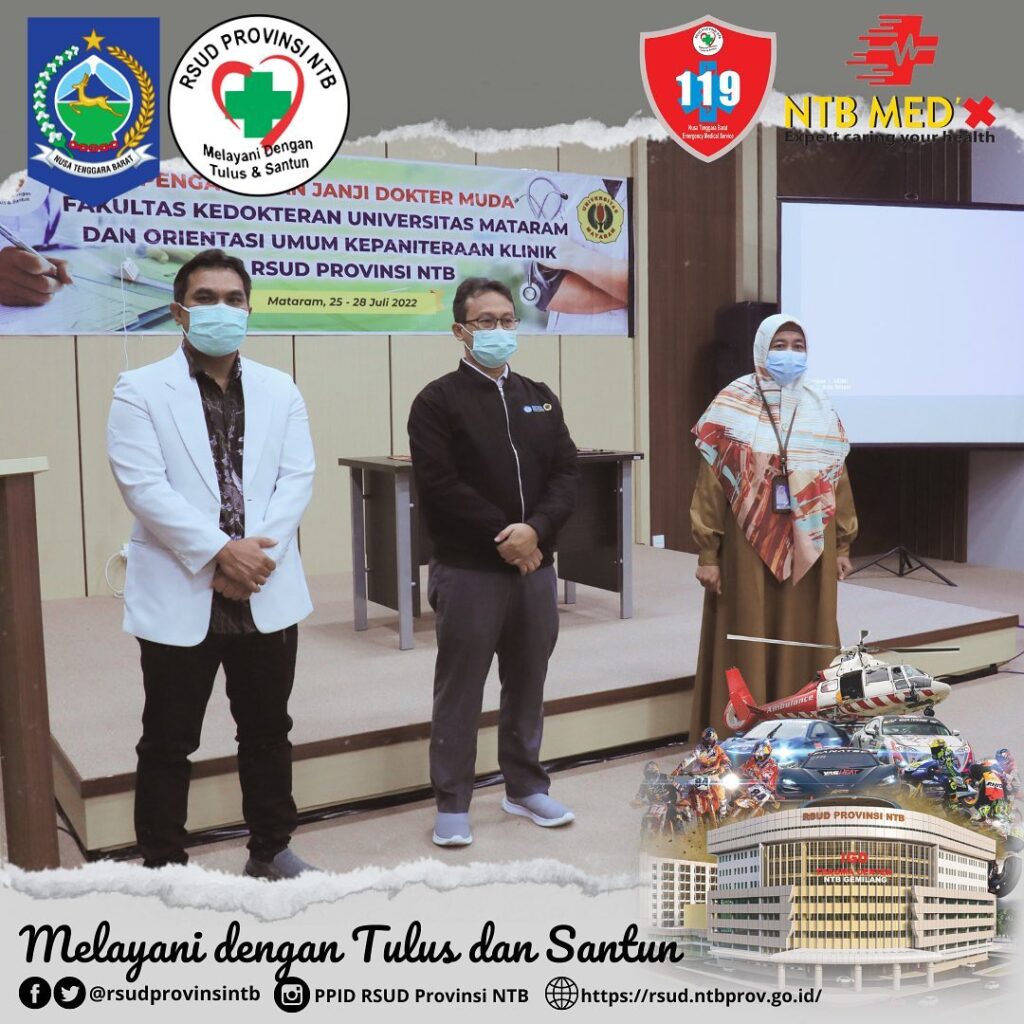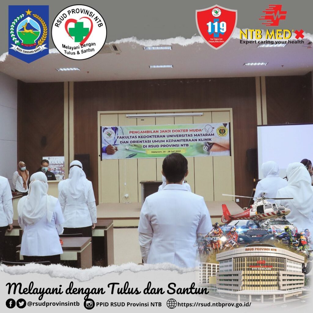 Sebanyak 13 Orang Dokter Muda Fakultas Kedokteran Universitas Mataram kemarin melaksanakan Pengambilan Janji Dokter Muda dan Memulai Tahapan Orientasi Umum Kepaniteraan Klinik di RSUD Provinsi NTB.