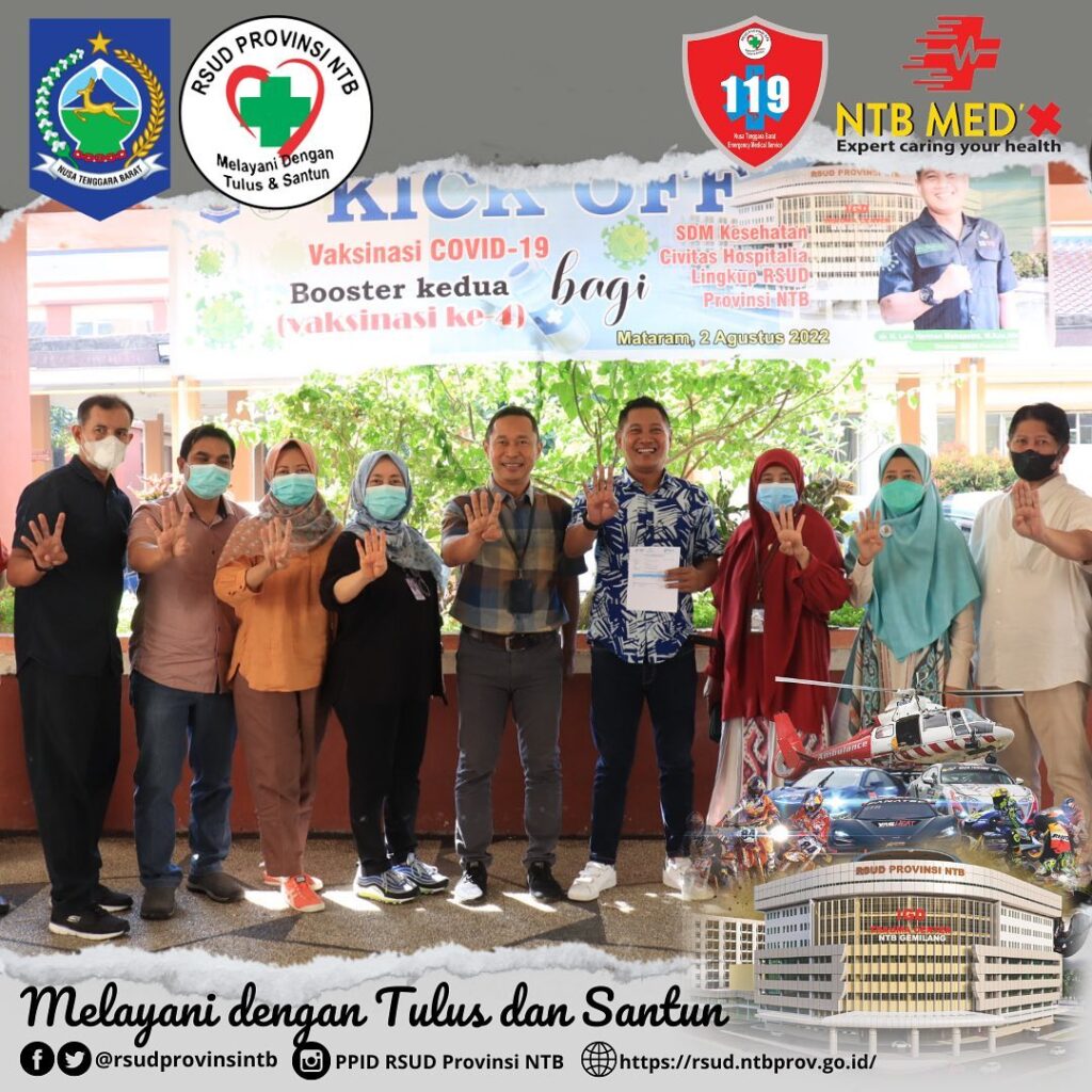 Atas dasar tersebut diatas dan Merujuk pada surat Edaran Direktorat Jendral Pencegahan dan Pengendalian Penyakit Kementerian Kesehatan Republik Indonesia Nomor HK.02.02/C/3615/2022 Tentang Vaksinasi Covid-19 Dosis Booster Kedua bagi Sumber Daya Manusia Kesehatan hari ini dr. Jack bersama Jajaran Direksi dan Manajemen memulai Kick Off pelaksanaan Vaksin Covid-19 Booster Kedua di RSUD Provinsi NTB.