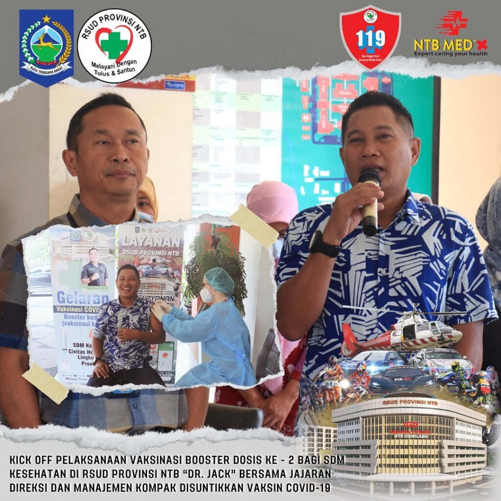 Atas dasar tersebut diatas dan Merujuk pada surat Edaran Direktorat Jendral Pencegahan dan Pengendalian Penyakit Kementerian Kesehatan Republik Indonesia Nomor HK.02.02/C/3615/2022 Tentang Vaksinasi Covid-19 Dosis Booster Kedua bagi Sumber Daya Manusia Kesehatan hari ini dr. Jack bersama Jajaran Direksi dan Manajemen memulai Kick Off pelaksanaan Vaksin Covid-19 Booster Kedua di RSUD Provinsi NTB.