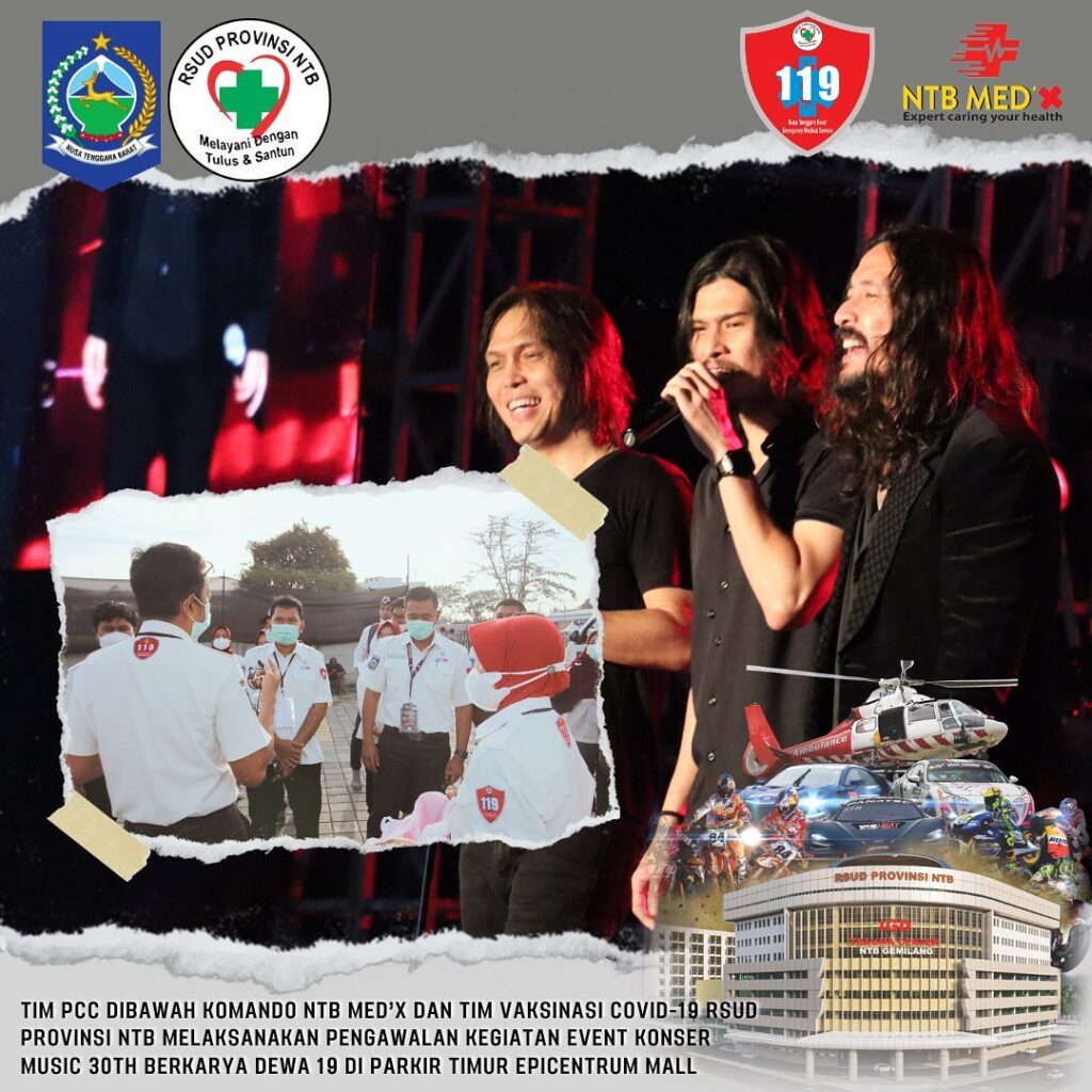 Menindak lanjuti Surat Permohonan Dukungan Ambulance Advanve dan Tim Medis dari CV. Sagara Arganta Indonesia kemarin dr. Jack memerintahkan 3 Ambulance Advance lengkap beserta Tim Medis Province Command Center dibawah Komando NTB Med’X RSUD Provinsi NTB melaksanakan Tugas mengawal jalannya pelaksanaan Event Konser Music 30th Berkarya Dewa 19.