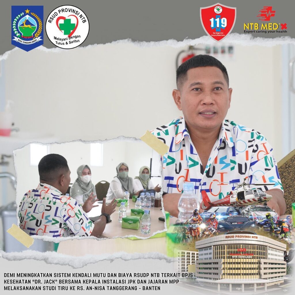 Dalam rangka Memberikan Layanan Kesehatan maksimal bagi masyarakat Nusa Tenggara Barat beberapa hari lalu dr. Jack bersama Kepala Instalasi JPK dan jajaran MPP RSUD Provinsi NTB berkunjung melaksanakan Studi Tiru Ke Rumah Sakit An – Nisa Tanggerang terkait sistem kendali mutu dan biaya RSUD Provinsi NTB terkait BPJS Kesehatan.