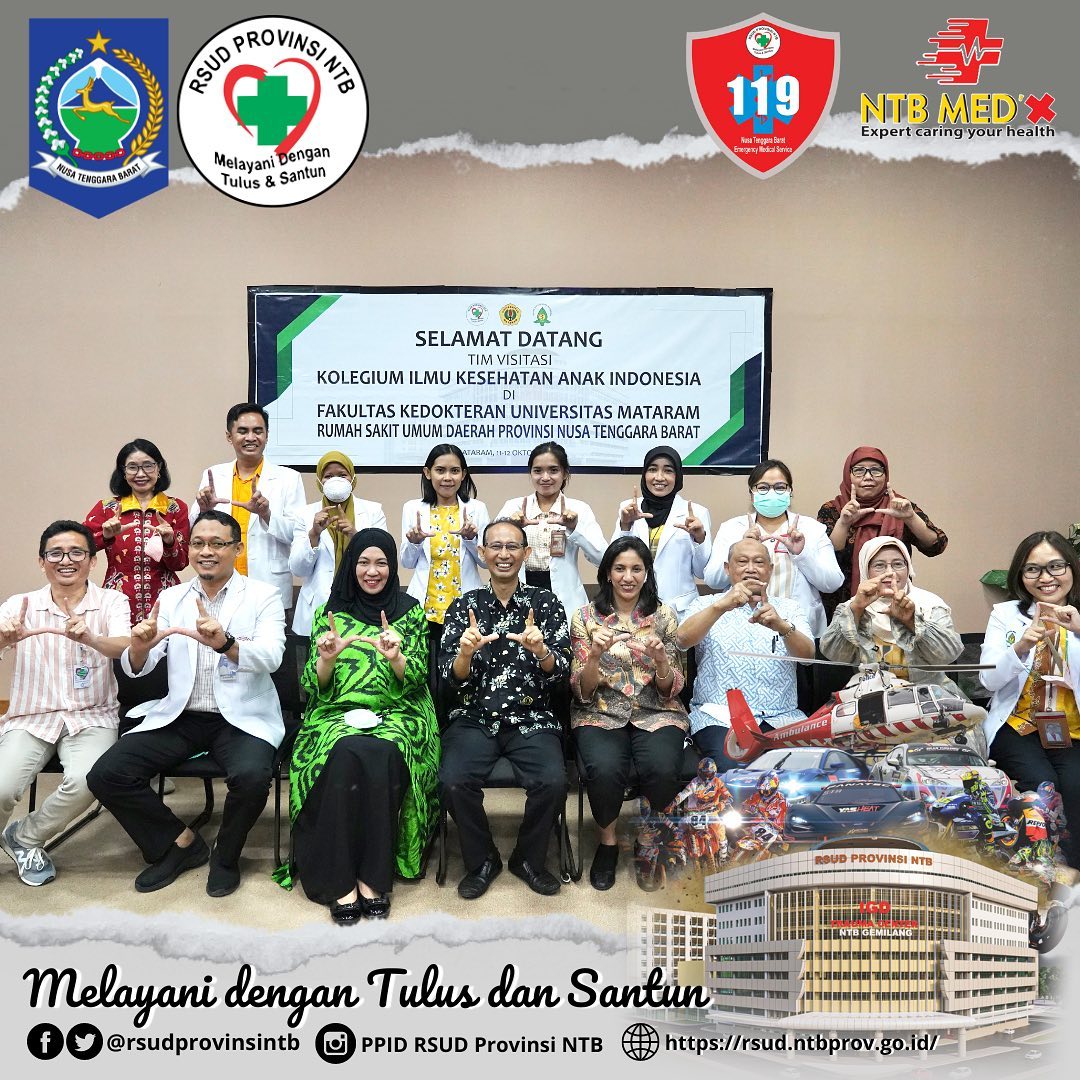 Beberapa saat lalu dr. Jack menerima kunjungan Visitasi awal dari Kolegium Ilmu Kesehatan Anak Indonesia (KIKAI) terkait rencana pendirian IPDSA (Institusi Pendidikan Dokter Spesialis Anak) di Fakultas Kedokteran Universitas Mataram dan Rumah Sakit Umum Daerah Provinsi Nusa Tenggara Barat sebagai Rumah Sakit Pendidikan. Dipimpin langsung oleh Ketua Kolegium Ibu Dr. Fatima Safira Alatas, Ph. D, Sp.A(K) dan dua orang Anggota di terima langsung di Aula Prof. Soewignyo RSUD Provinsi NTB.