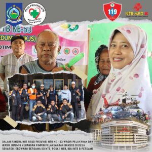 Sebagai salah satu Rangkaian Kegiatan dalam rangka HUT RSUD Provinsi NTB Ke – 53 yang jatuh pada Bulan November Mendatang kemarin Wakil Direktur Umum & Keuangan dan Wakil Direktur Pelayanan RSUD Provinsi NTB memimpin Pelaksanaan Bhakti Sosial di Desa Sekaroh, Kecamatan Jerowaru, Kabupaten Lombok Timur.