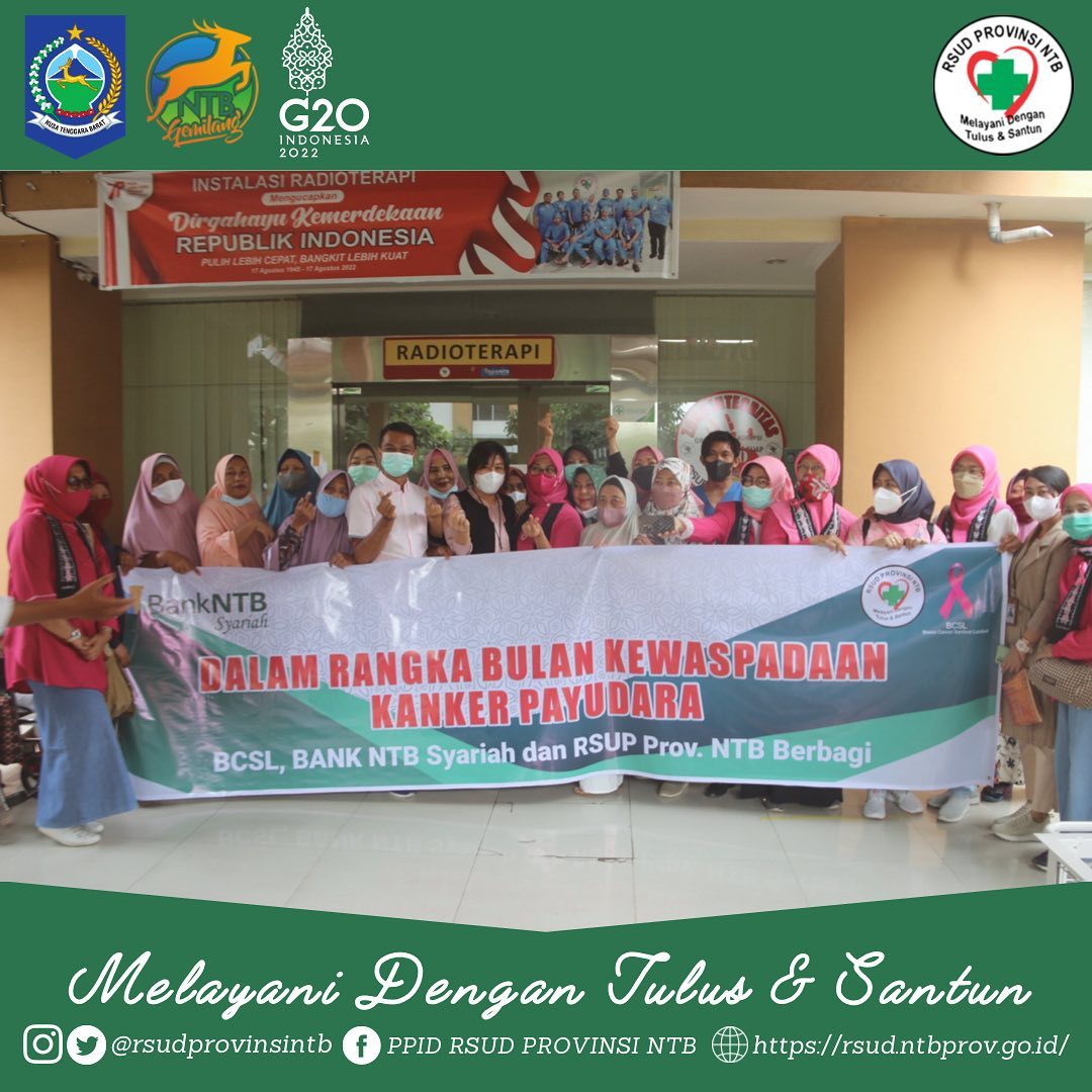Pagi ini BCSL “Breast Cancer Survivor Lombok” Berkolaborasi dengan Bank NTB Syariah Mengunjungi Pengidap Kanker yang menjalani Terapi di RSUD Provinsi NTB ini merupakan kegiatan dalam rangka Memperingati Hari Kanker Payudara Sedunia yang Jatuh pada tanggal 26 Oktober tiap tahunnya.