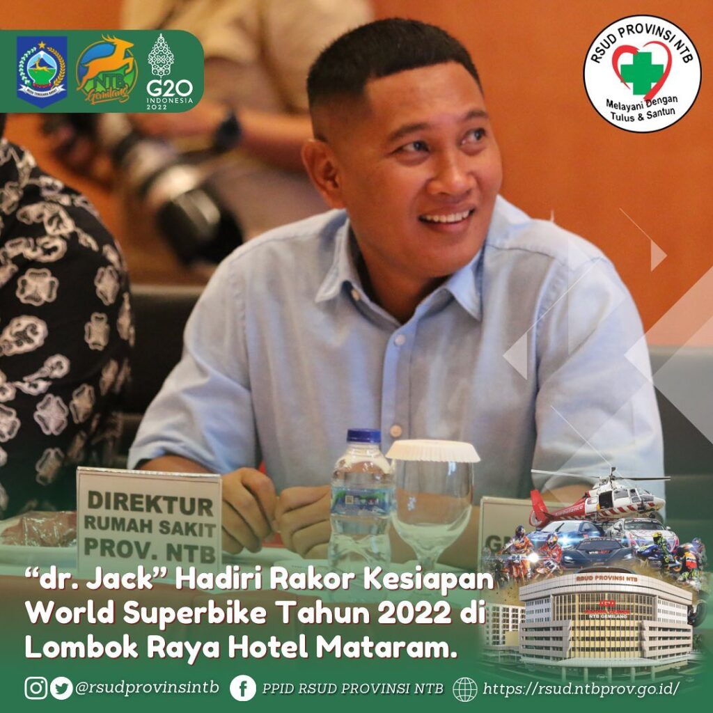 dr. Jack selaku penanggung jawab Tim Medis yang bertugas menyatakan kesiapannya mendukung penuh pelaksanaan World Superbike 2022, “Rumah Sakit Provinsi NTB sebagai Rumah Sakit Rujukan Utama dan Medical Center di Sirkuit Mandalika sudah kami persiapkan maksimal tak lupa seluruh Tim Medis yang terlibat juga sudah sangat siap menjalankan Tugasnya” tegas dr. Jack.