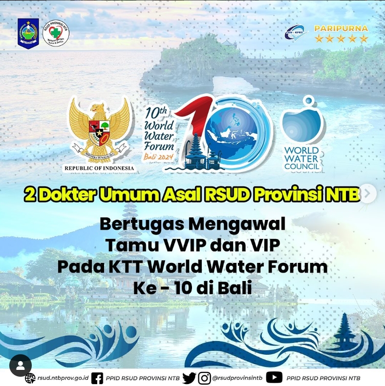 Penyelenggaraan 10th World Water Forum 2024 di Bali yang dihadiri oleh 148 Negara dan 8 Kepala Negara serta delegasi Negara Lainnya melibatkan ribuan tenaga medis dalam mengawal kesehatan mulai dari Tamu VIP hingga VVIP.